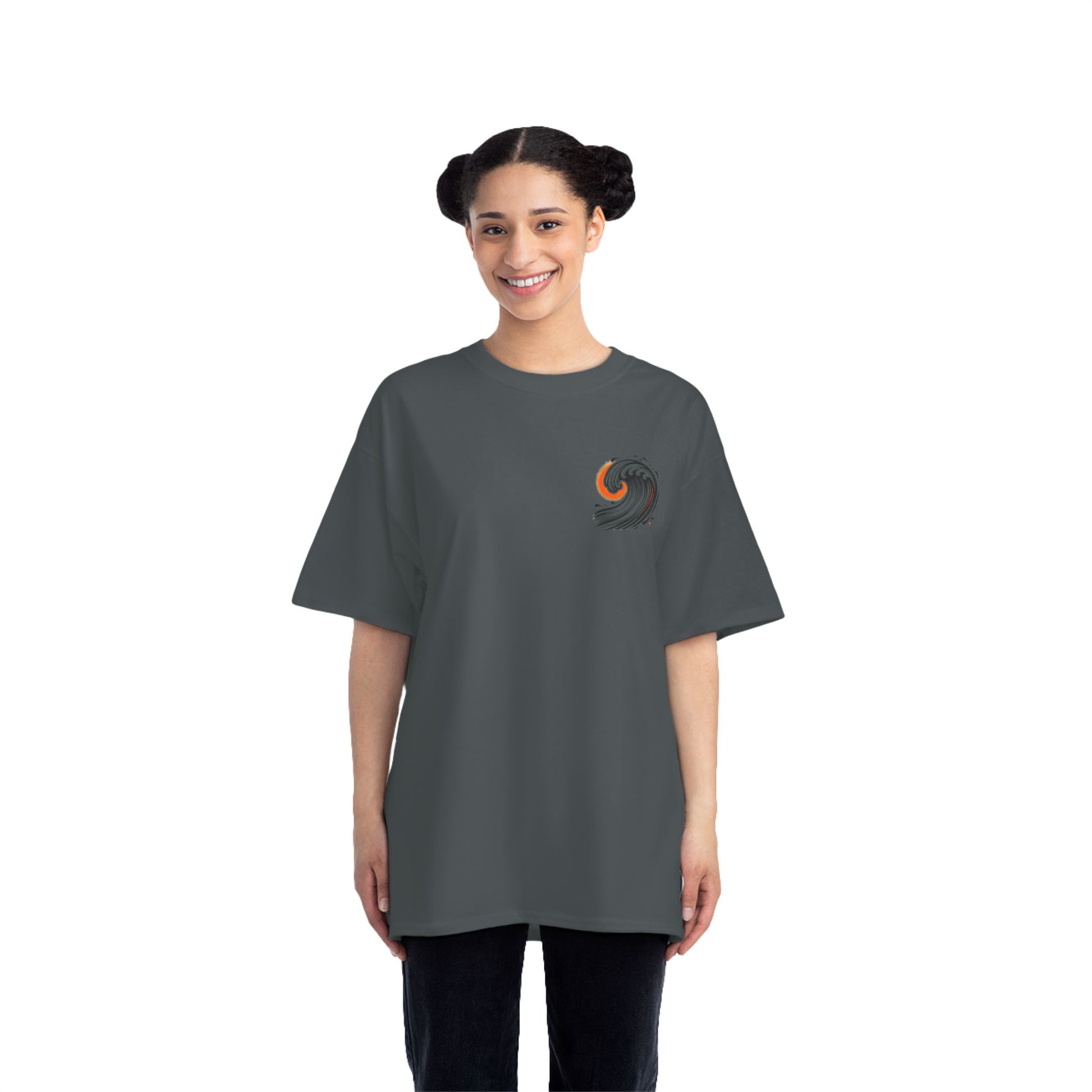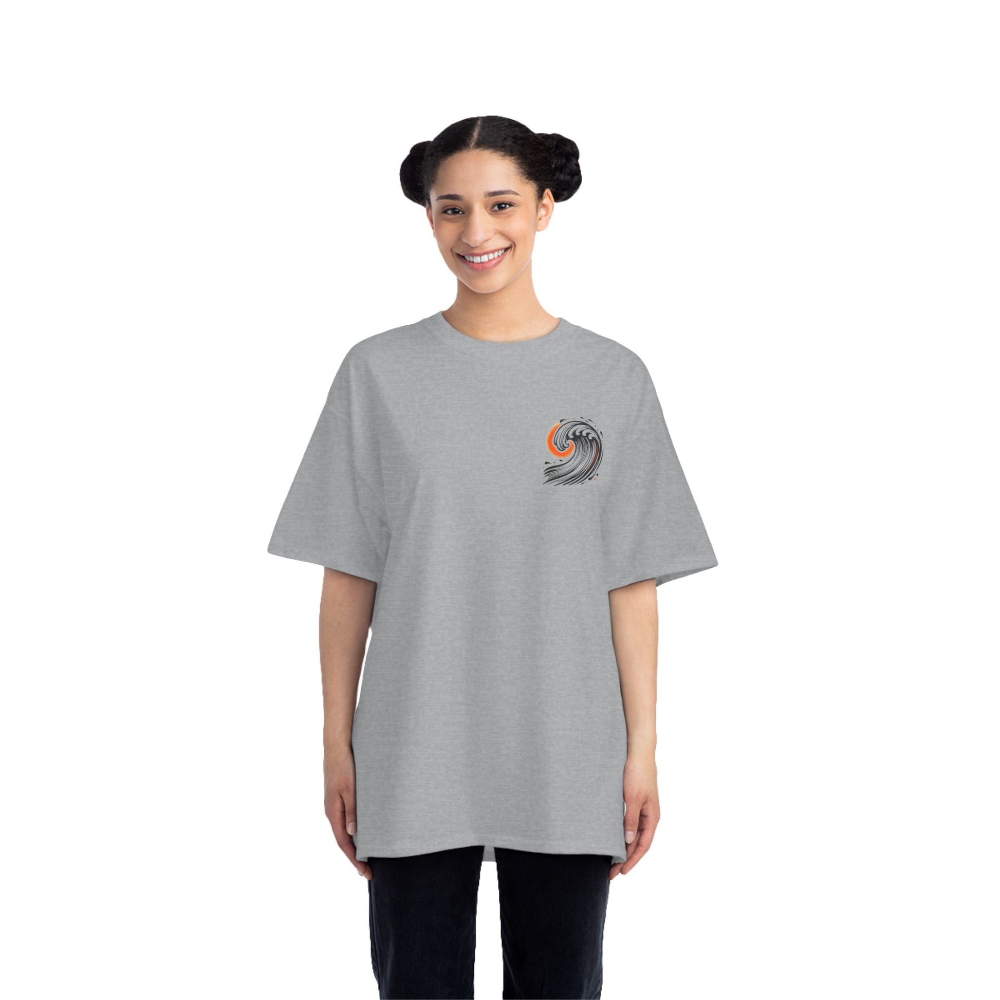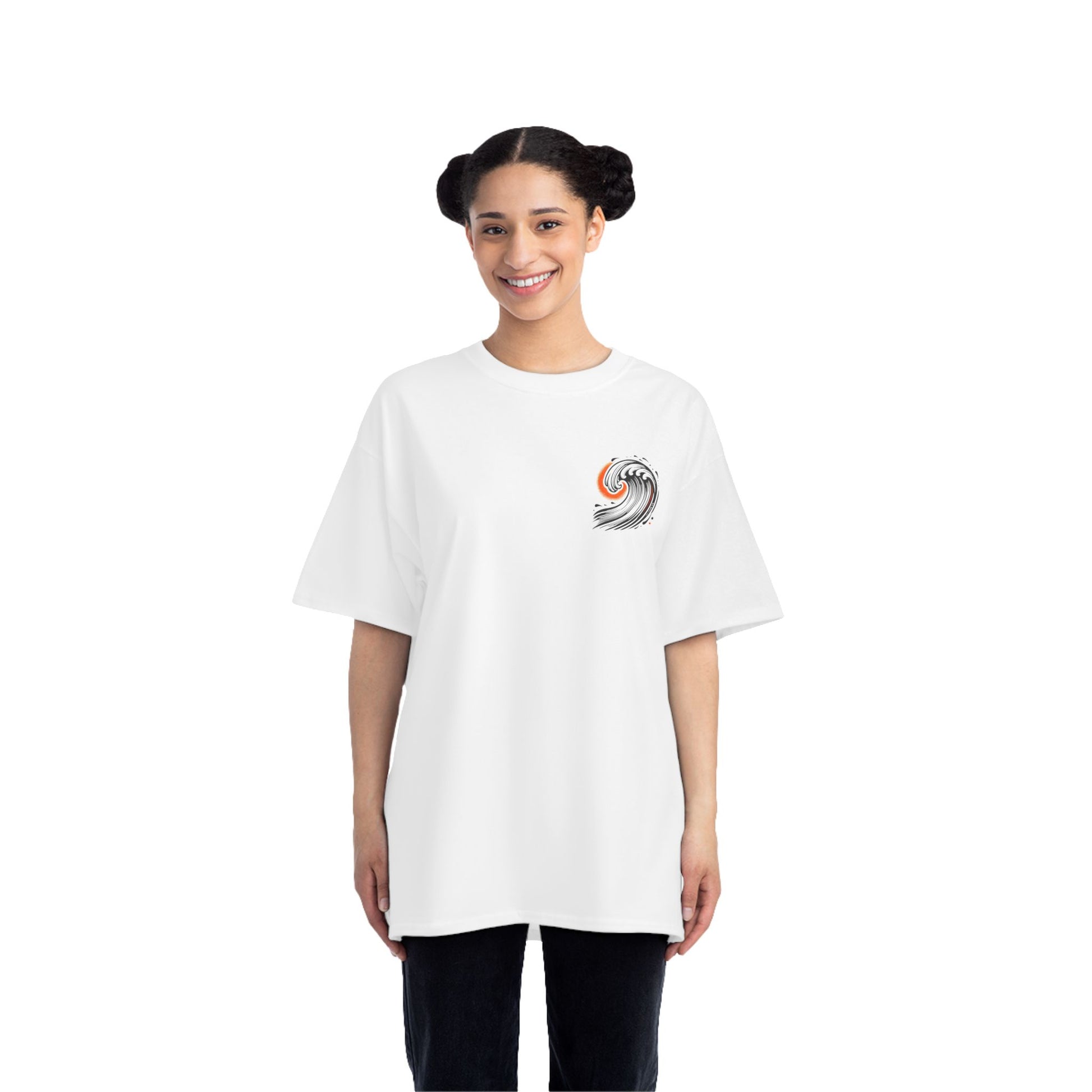 Make a splash with our Surf Wave: Pop Art Minimalistic tee. This isn't just a T-shirt, it's wearable art. Crafted with a vibrant, AI-generated design, this piece features a stylized ocean wave with sharp black lines and a fiery orange splatter, bringing a dynamic, energetic vibe to your wardrobe.