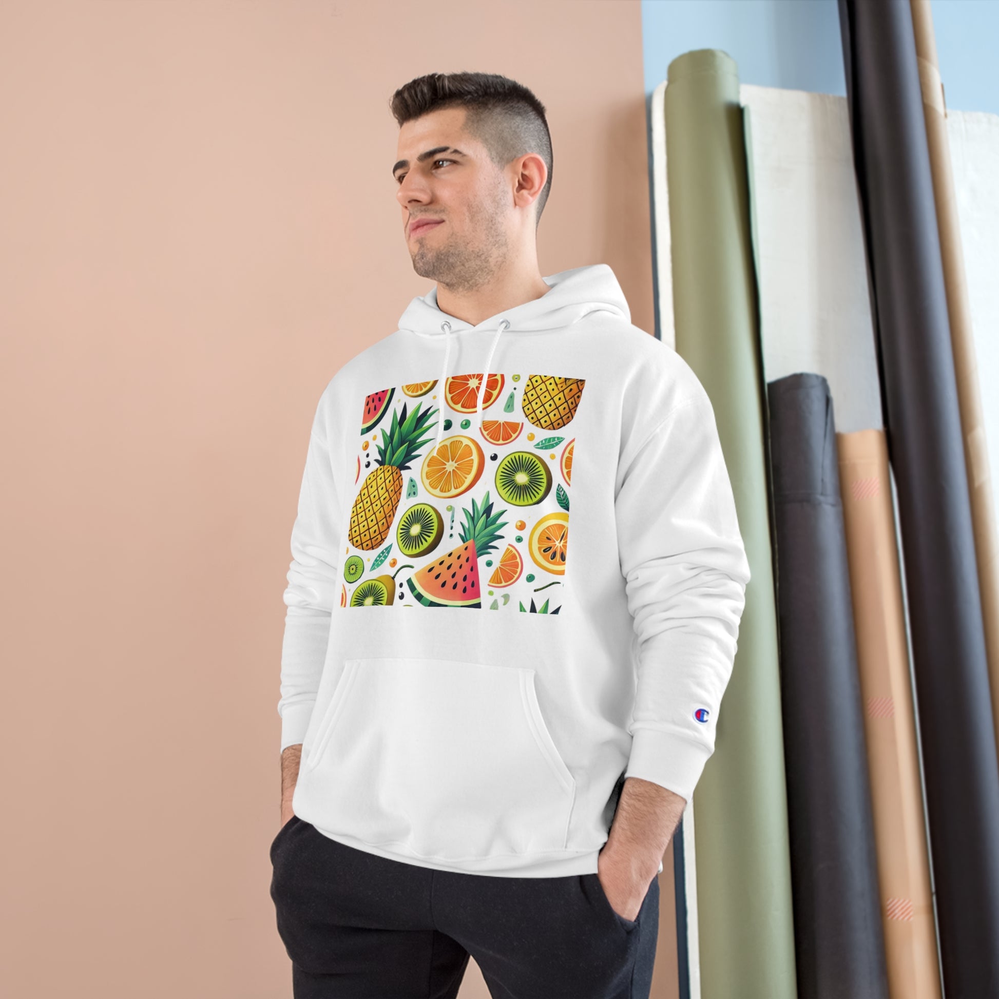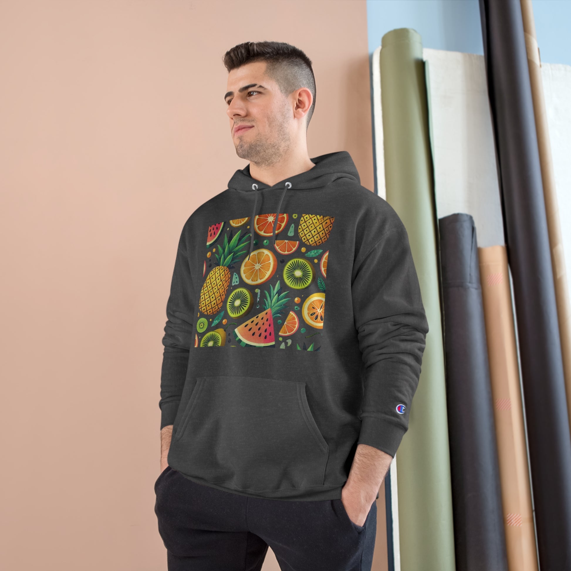 Crafted from 50% cotton and 50% polyester – with up to 5% recycled plastic bottles – our Tropical Fruits Pattern hoodie is as sustainable as it is stylish. It features kangaroo pockets for added convenience and a medium-heavy fabric that wraps you in warmth and coziness. The adjustable two-ply hood, self-colored woven cord, and metal grommets add that extra touch of sophistication to your relaxed, casual look.