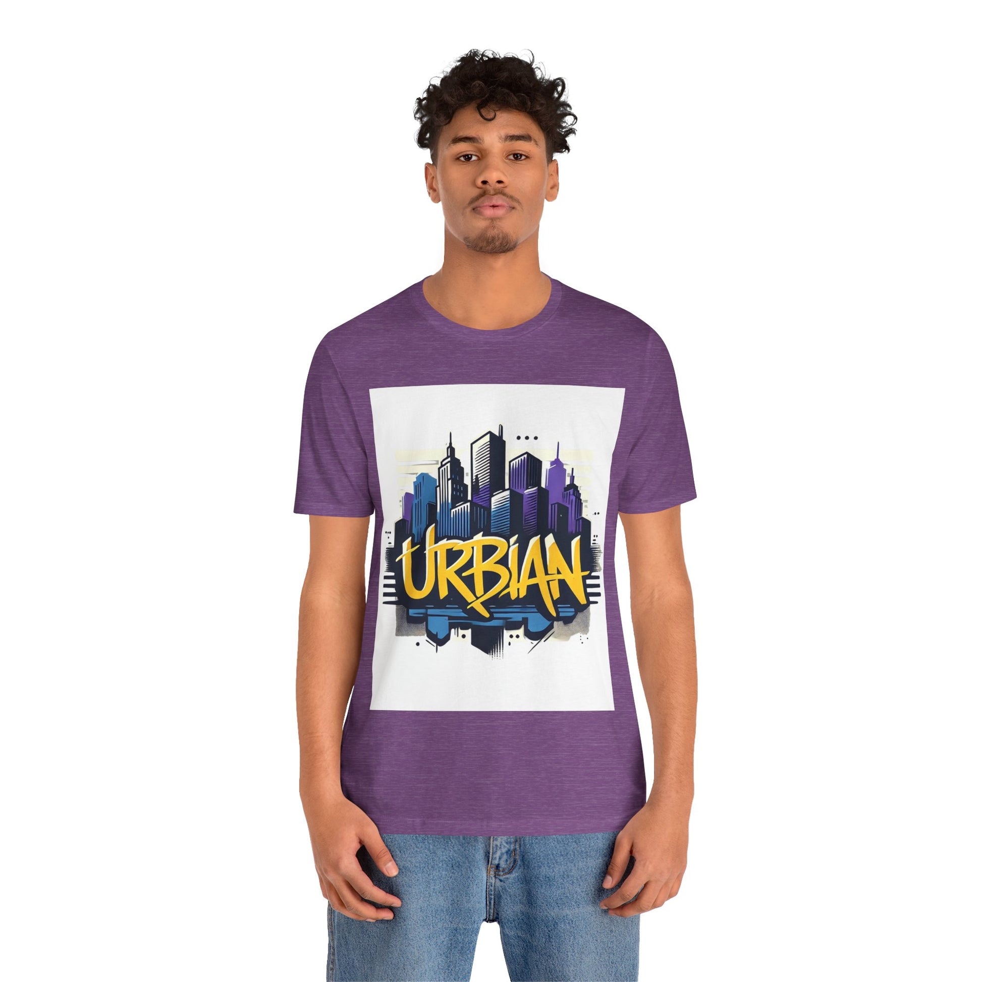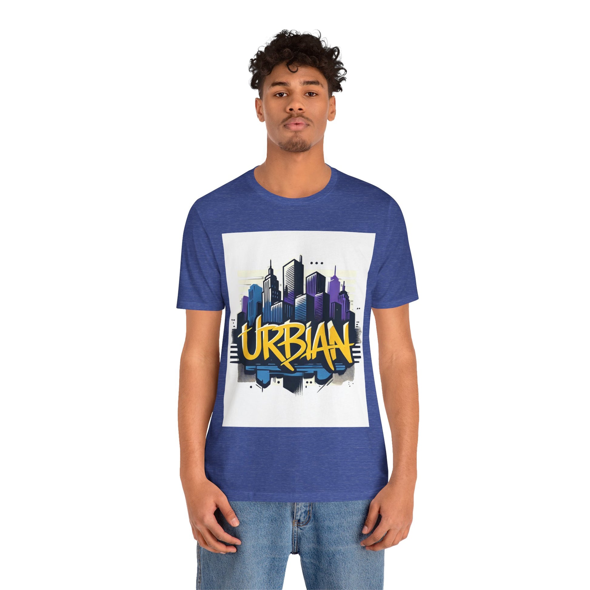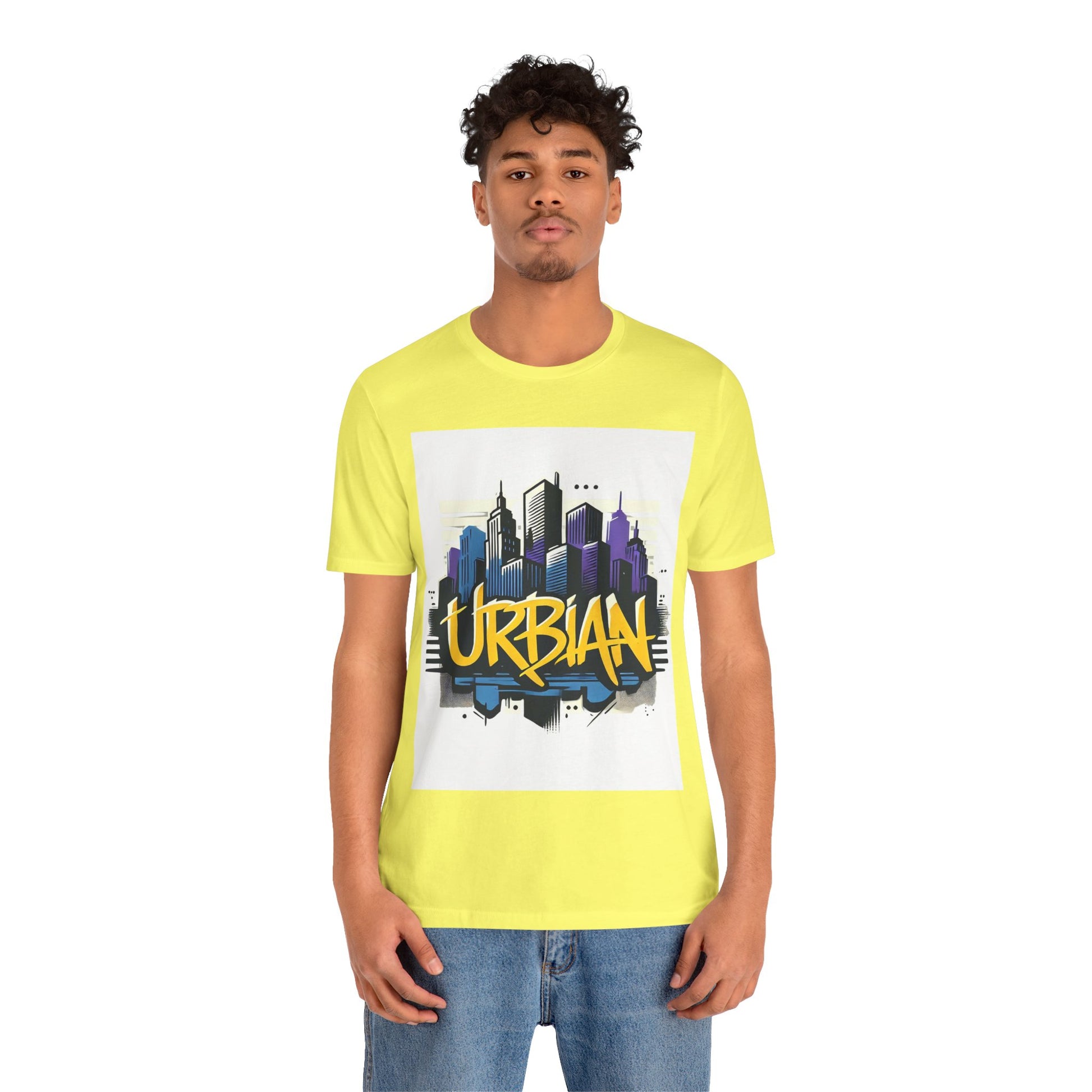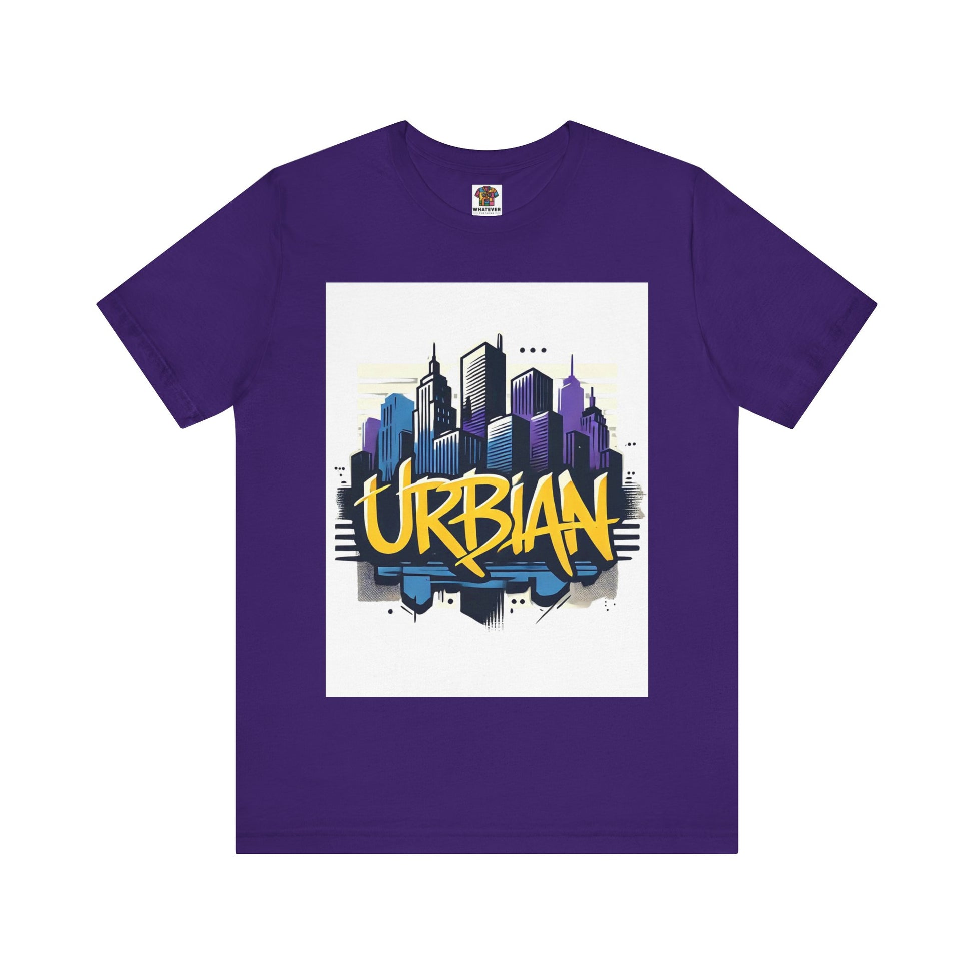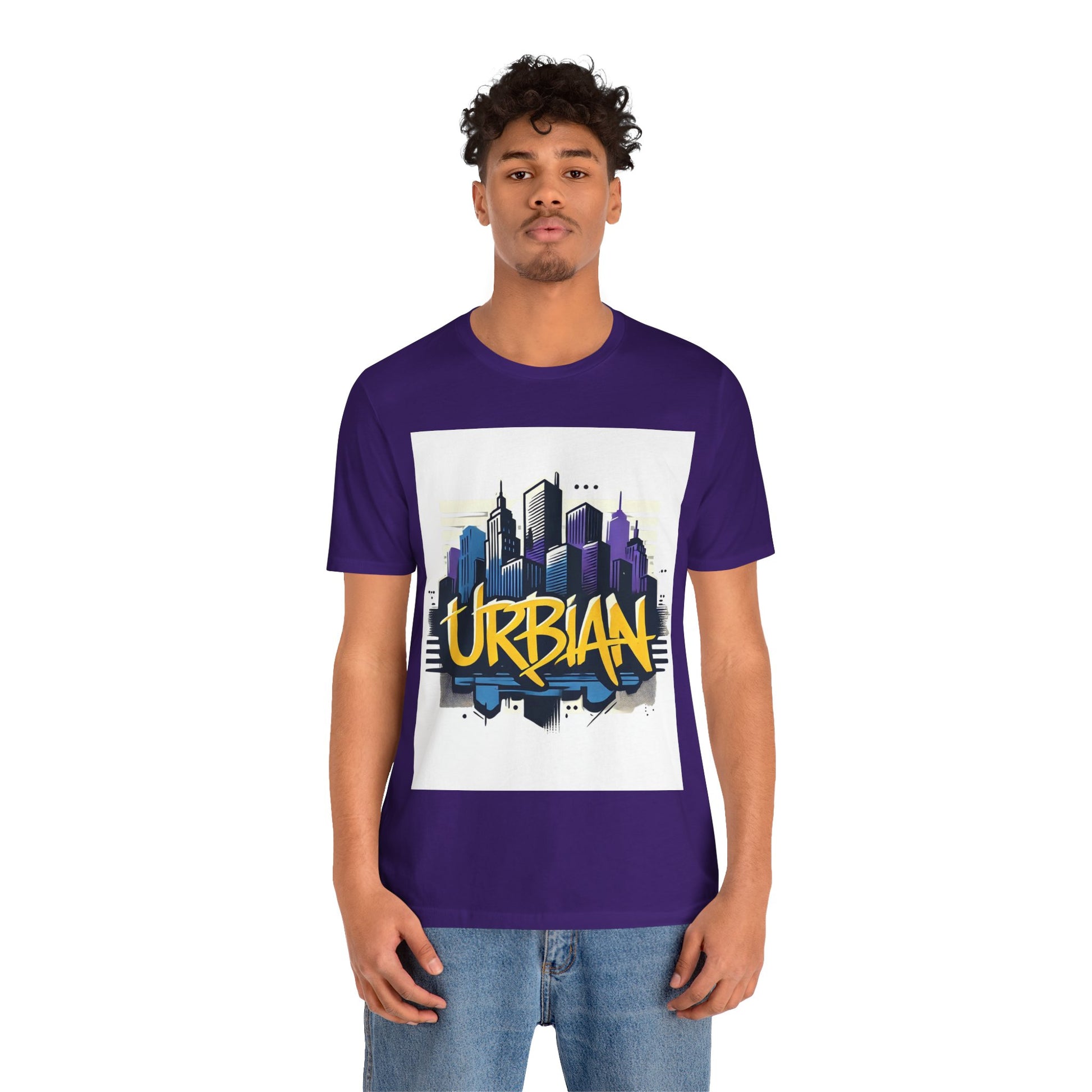 A modern cityscape in deep blues and purples with graffiti-style "Urban" text in bright yellow. Bold and edgy, perfect for urban culture lovers.