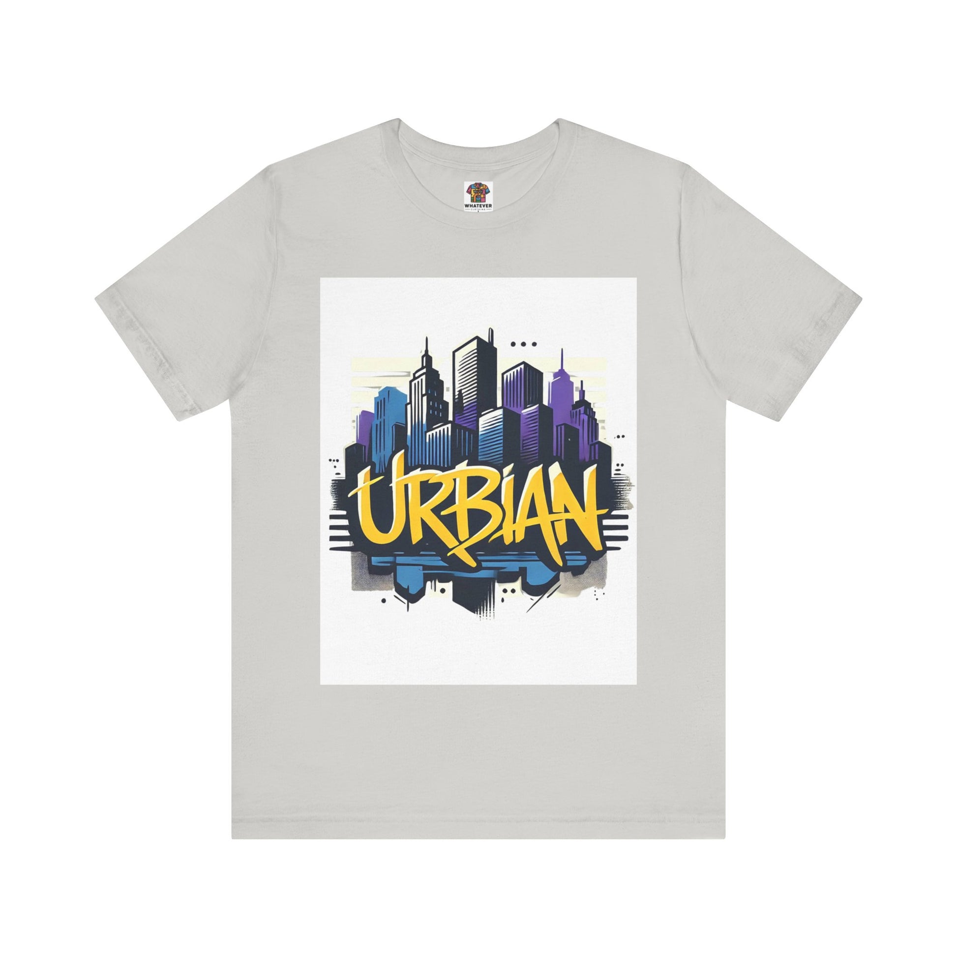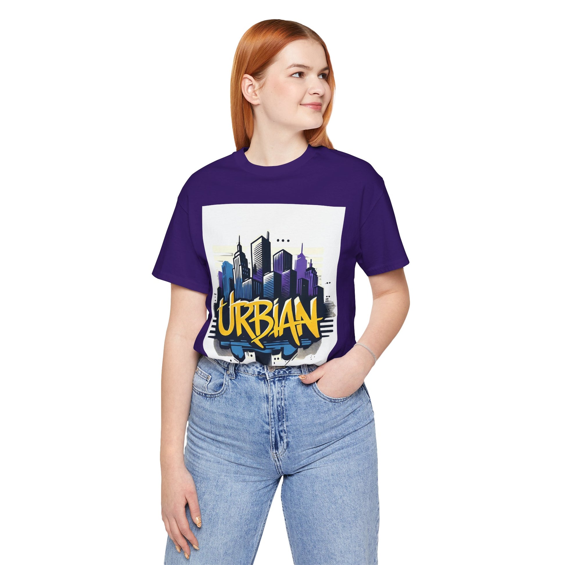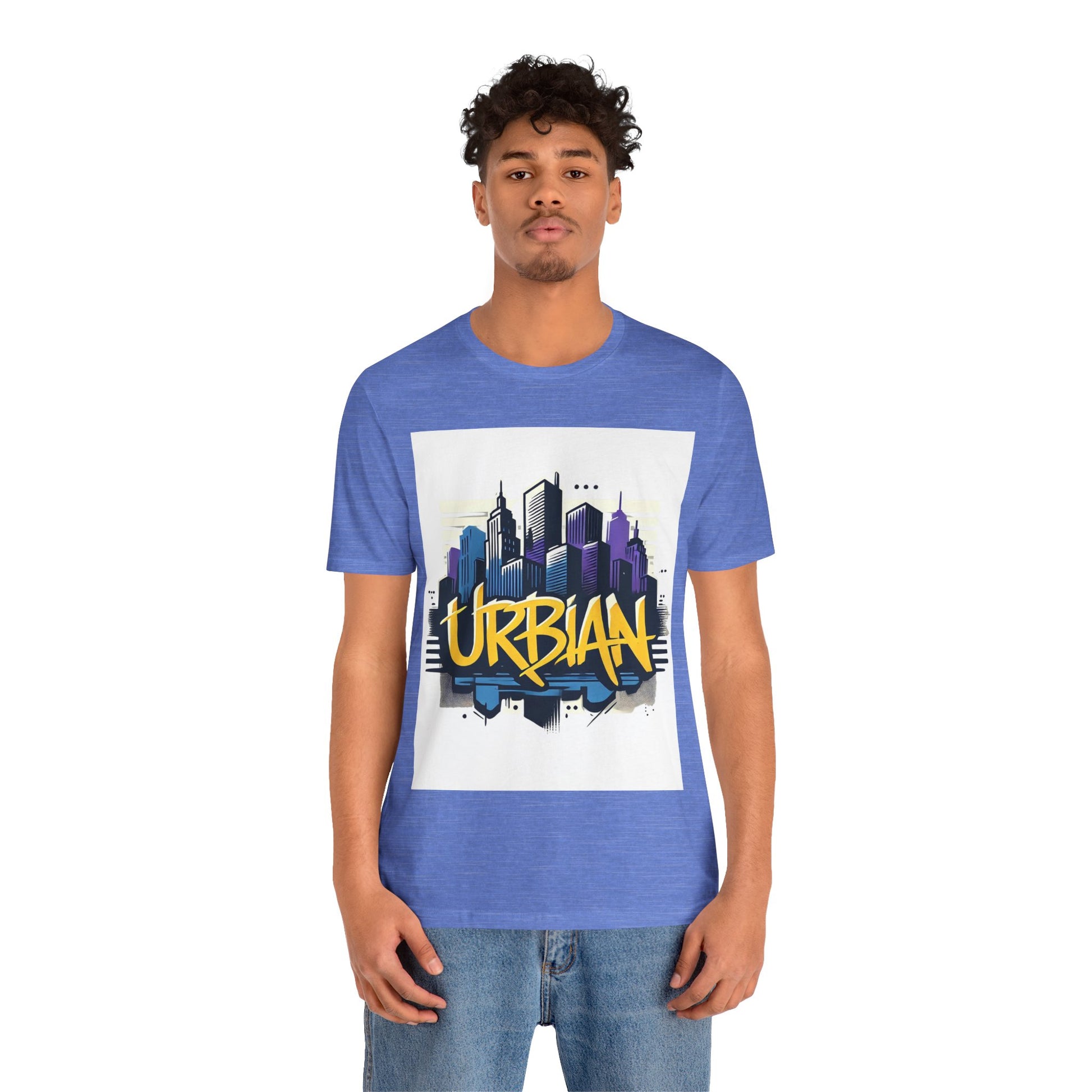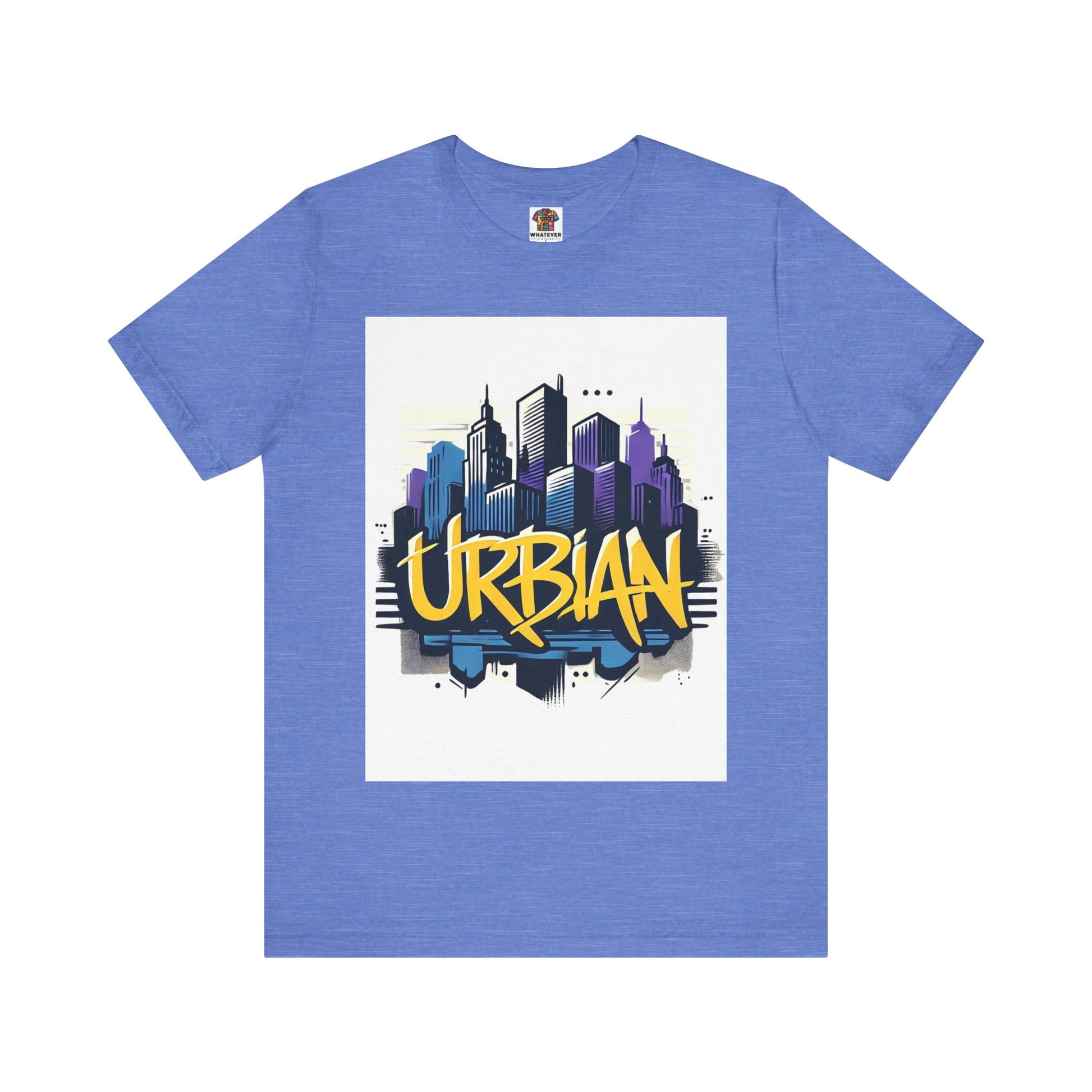 A modern cityscape in deep blues and purples with graffiti-style "Urban" text in bright yellow. Bold and edgy, perfect for urban culture lovers.