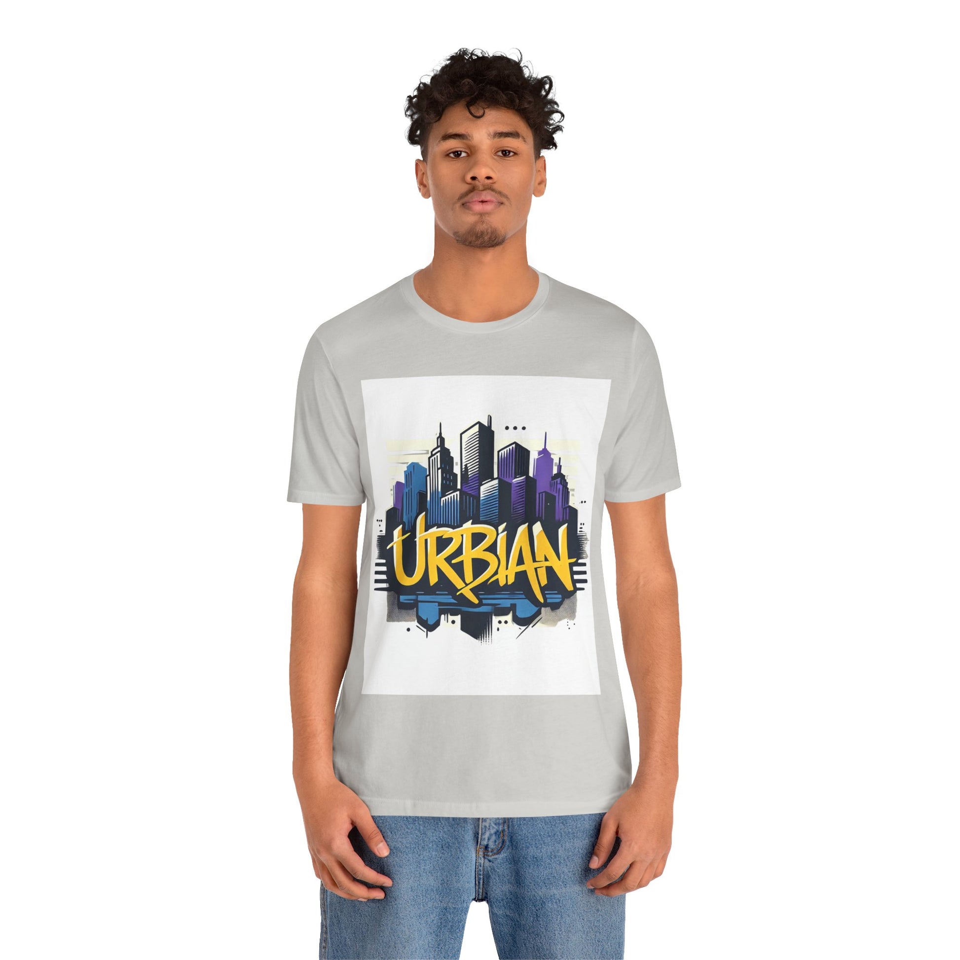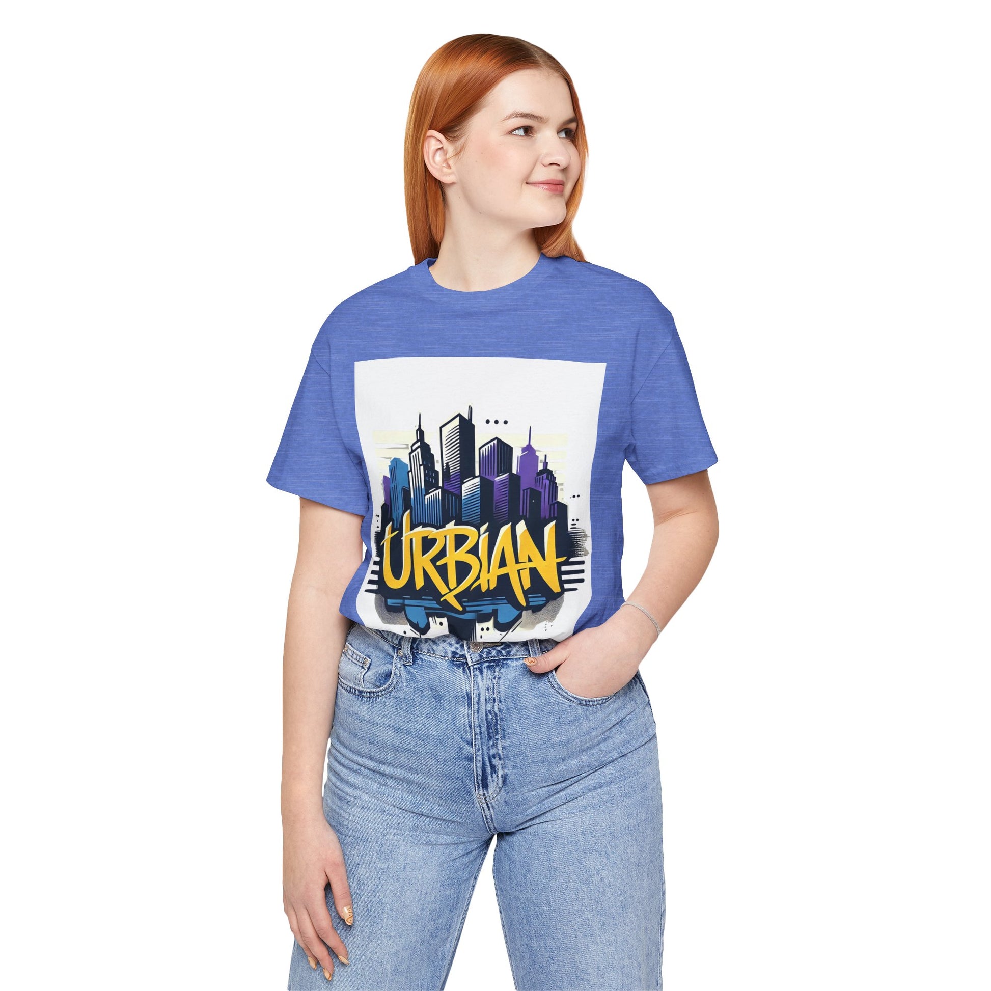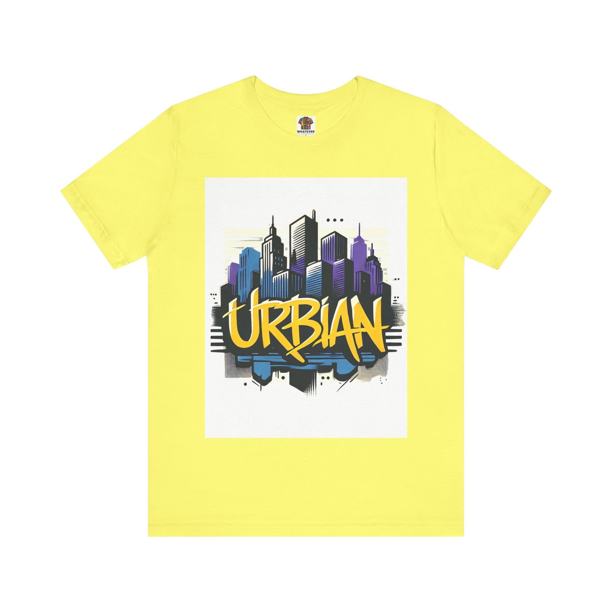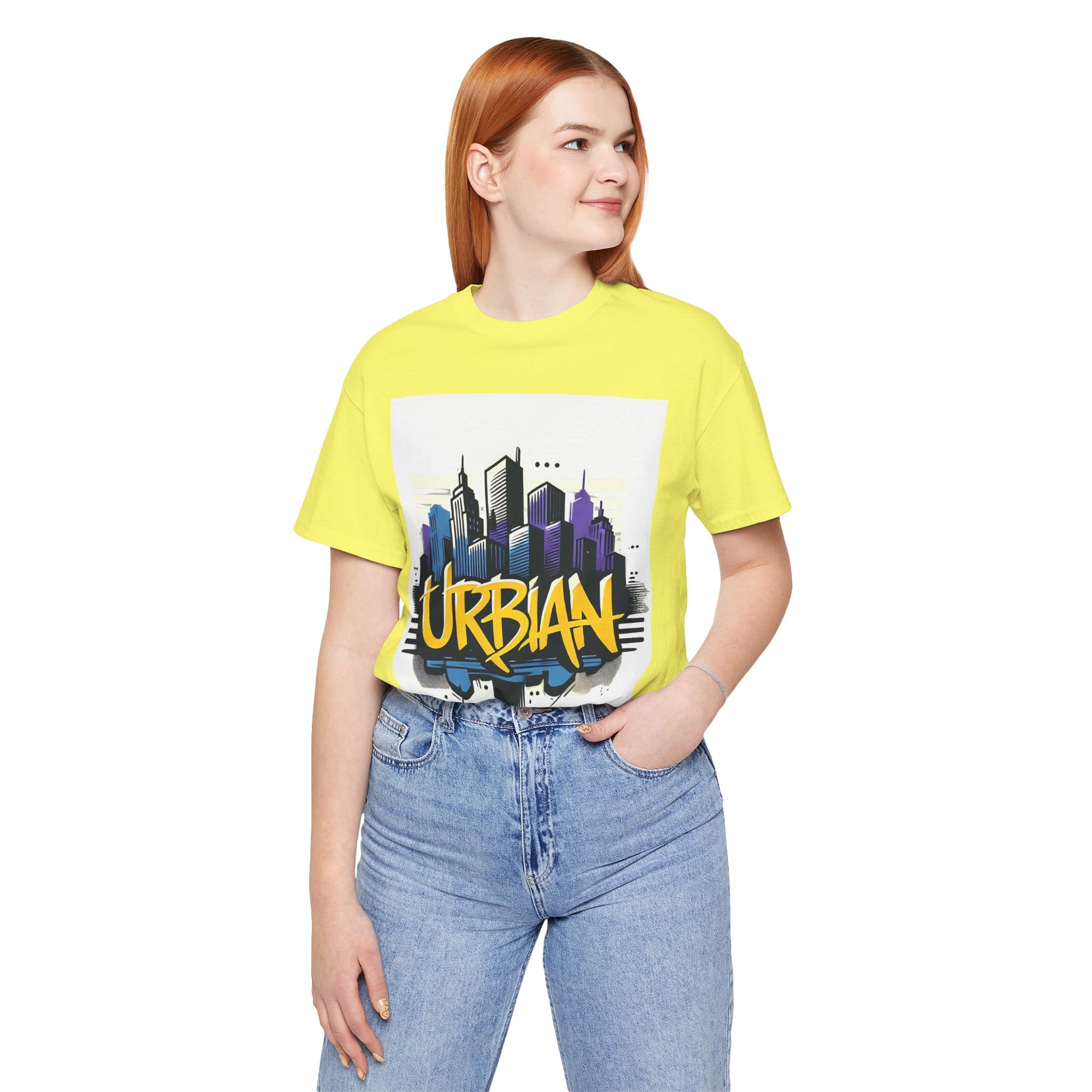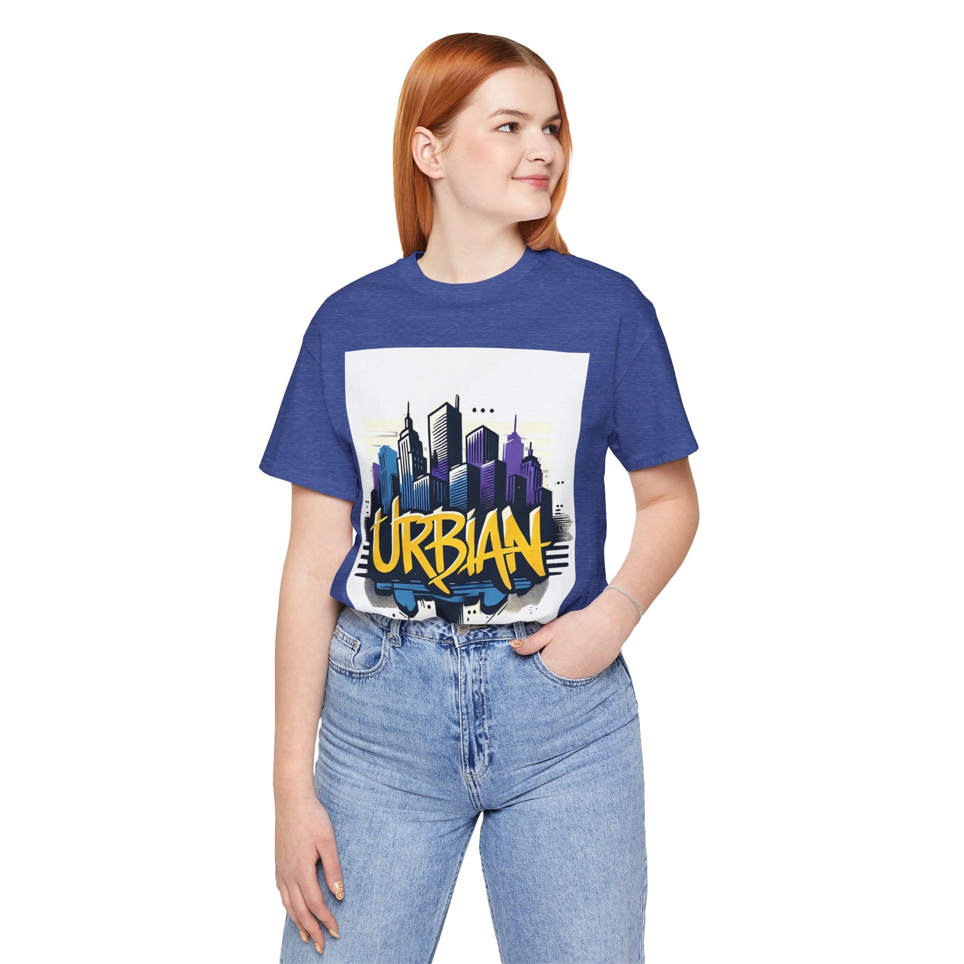 A modern cityscape in deep blues and purples with graffiti-style "Urban" text in bright yellow. Bold and edgy, perfect for urban culture lovers.