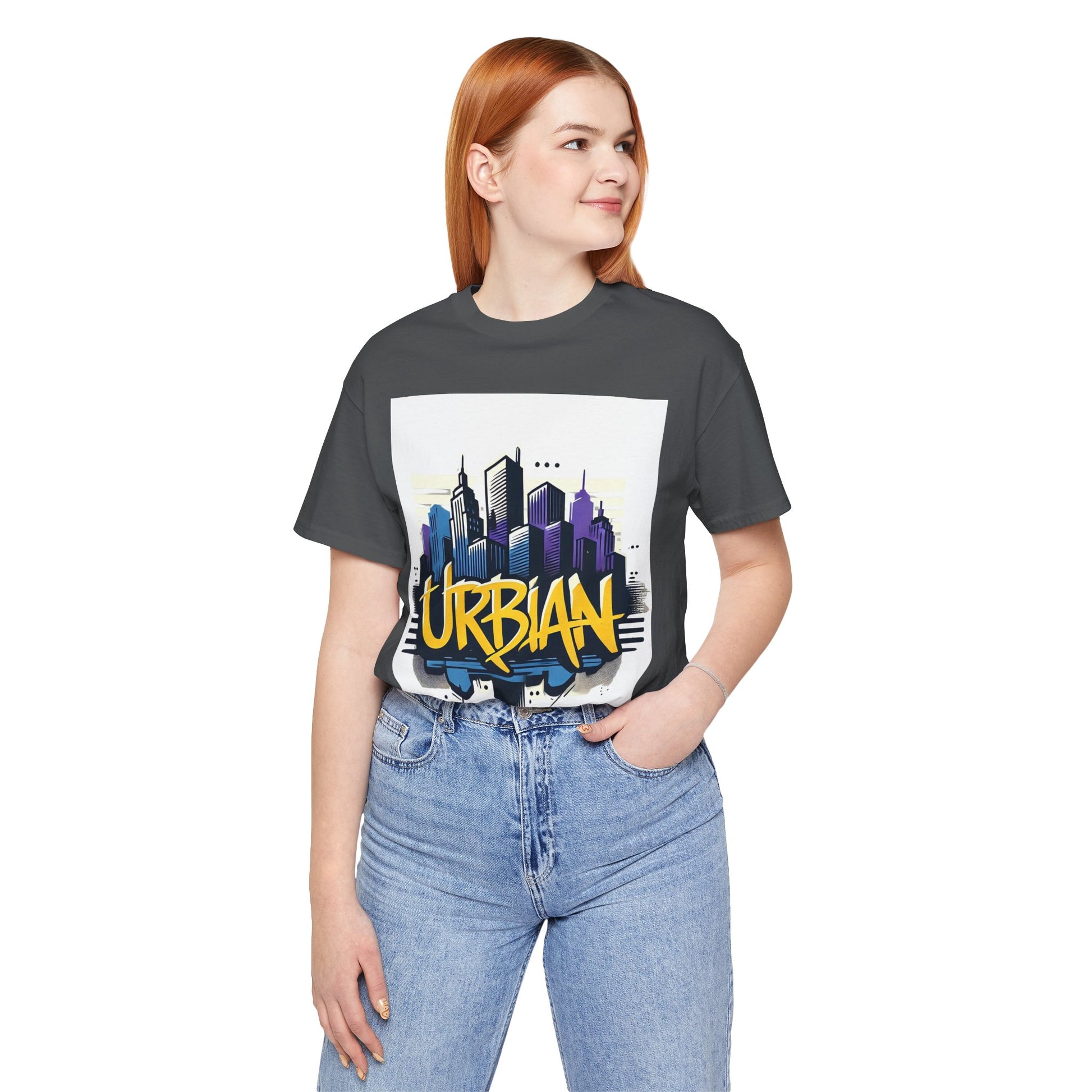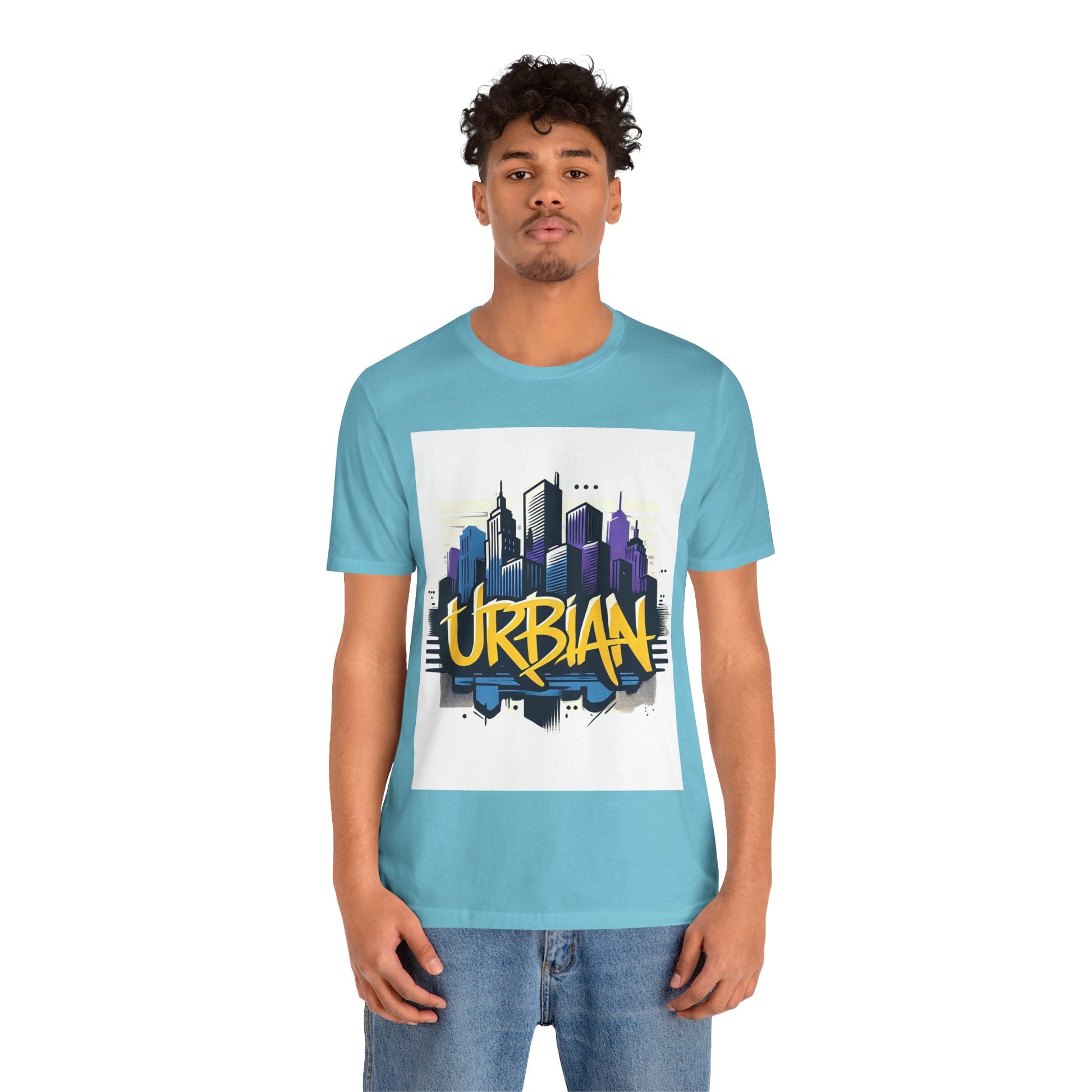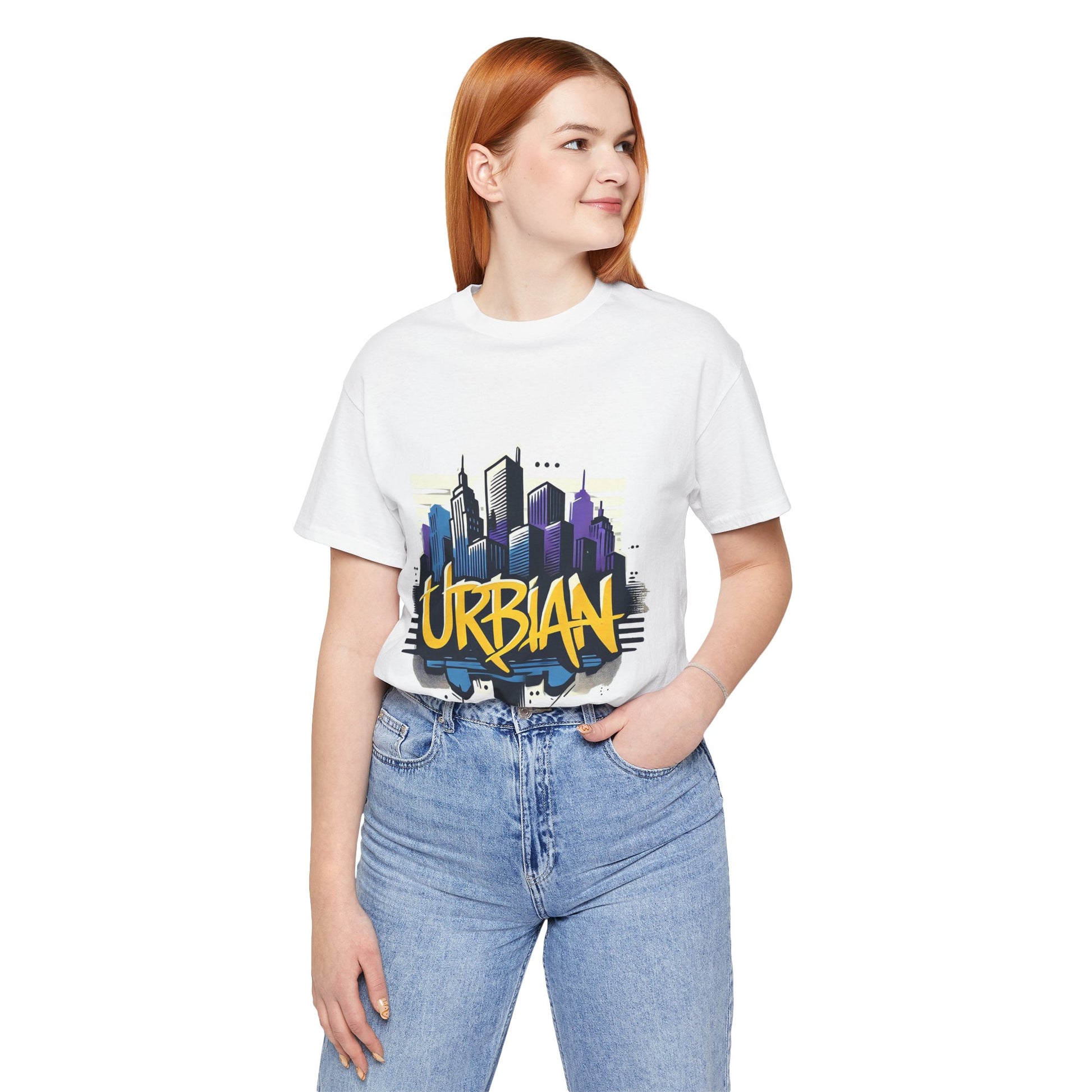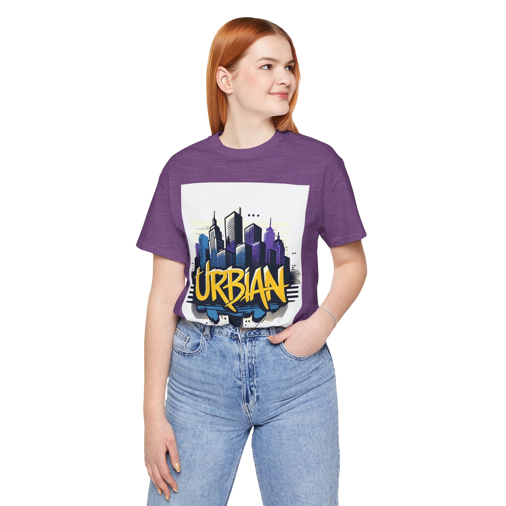 A modern cityscape in deep blues and purples with graffiti-style "Urban" text in bright yellow. Bold and edgy, perfect for urban culture lovers.