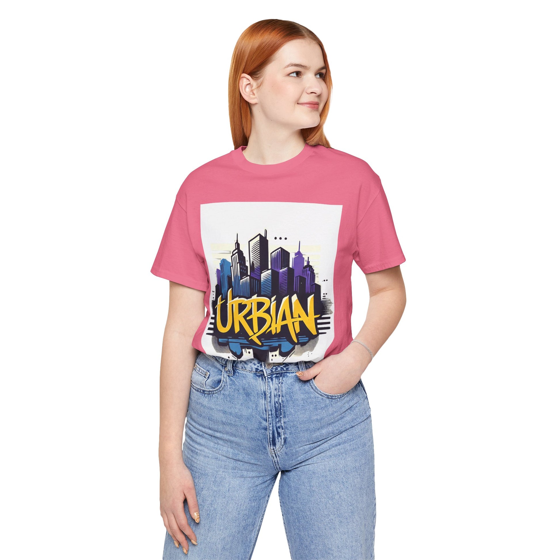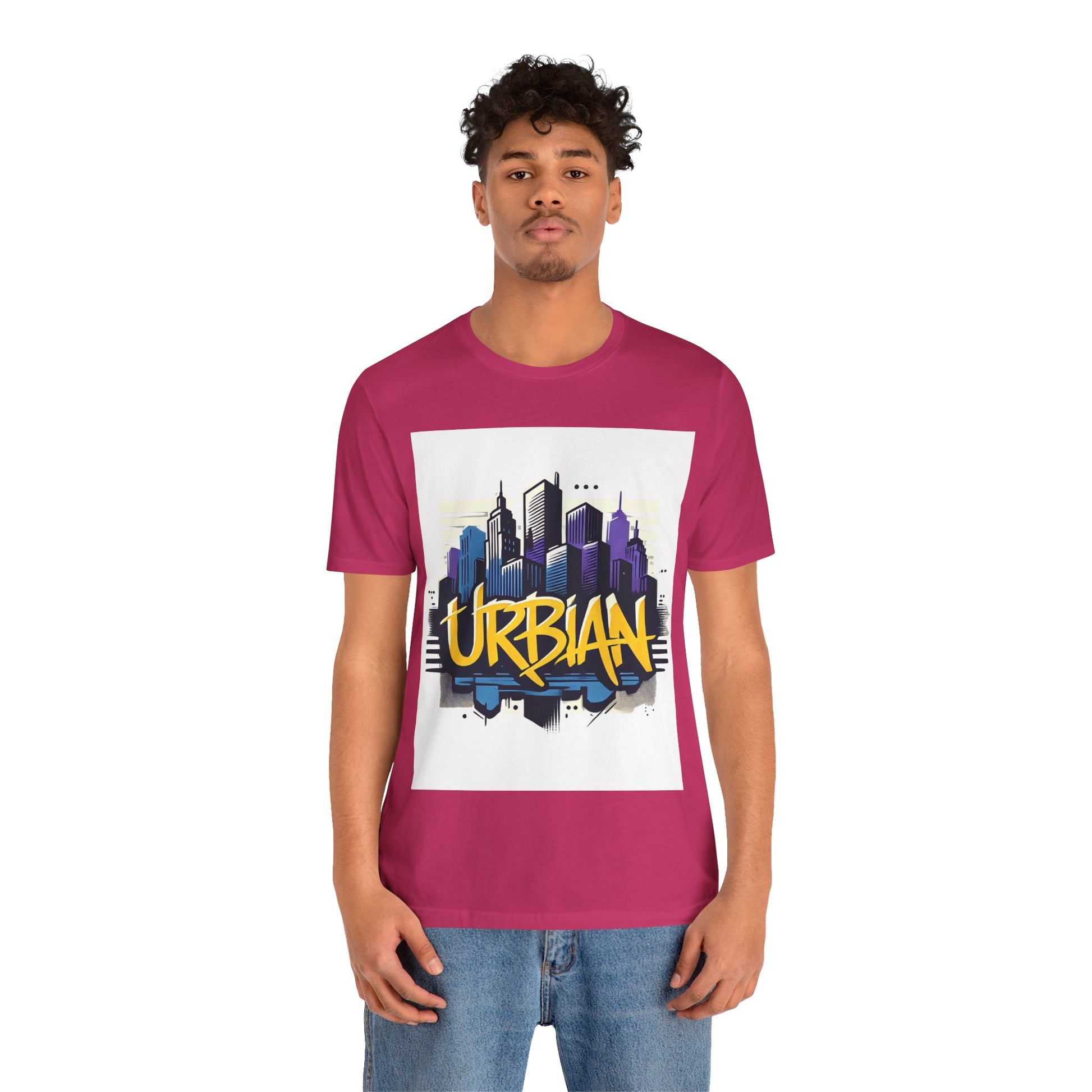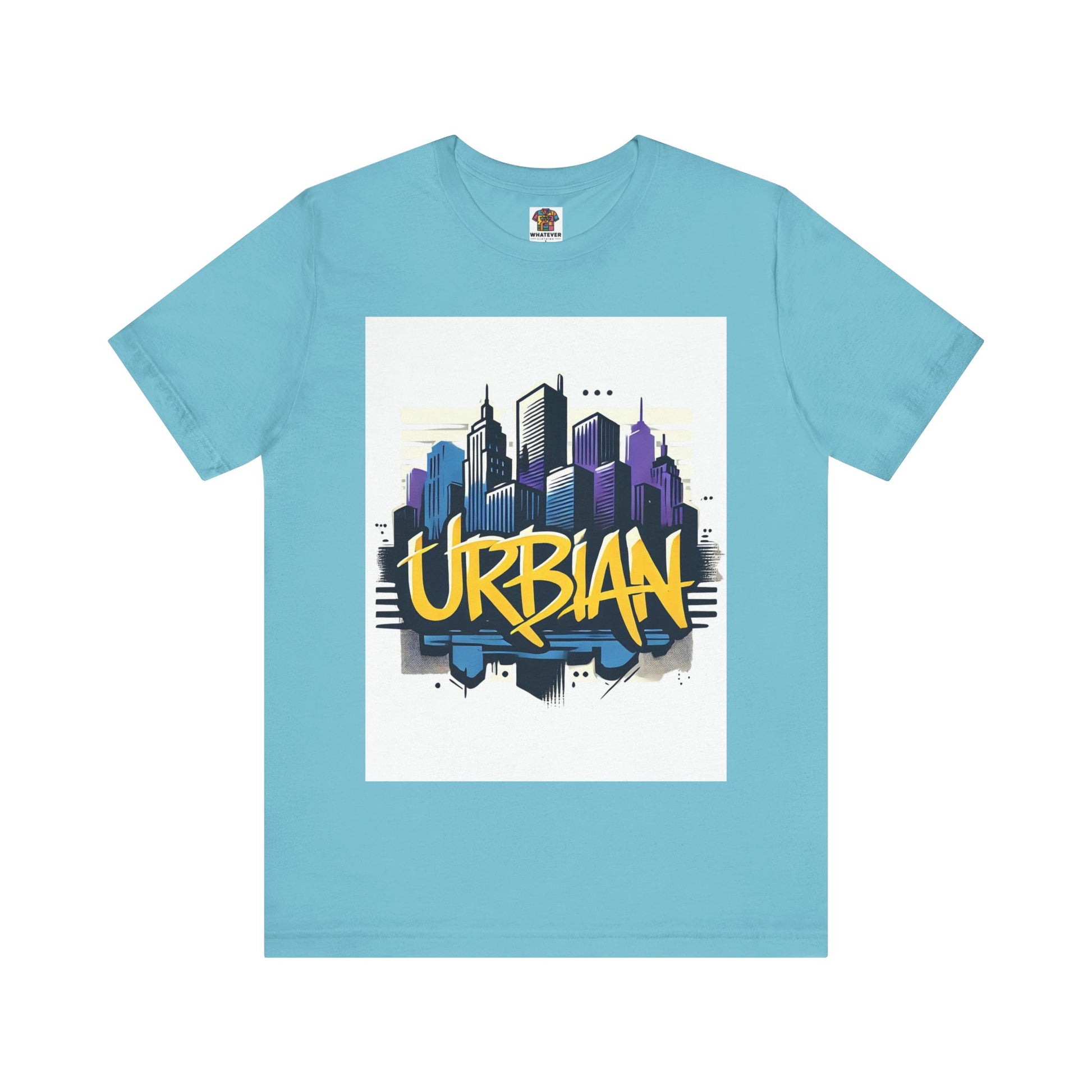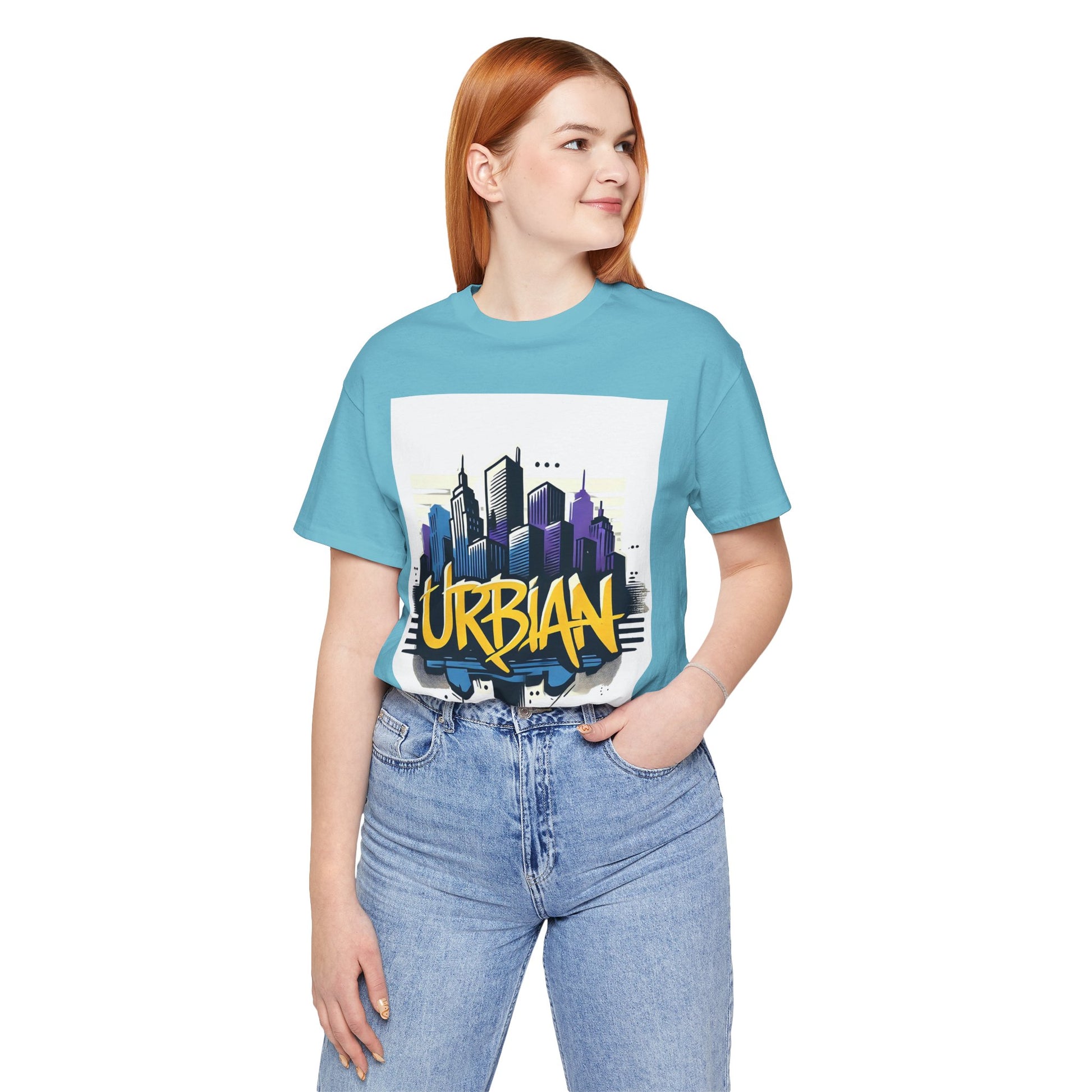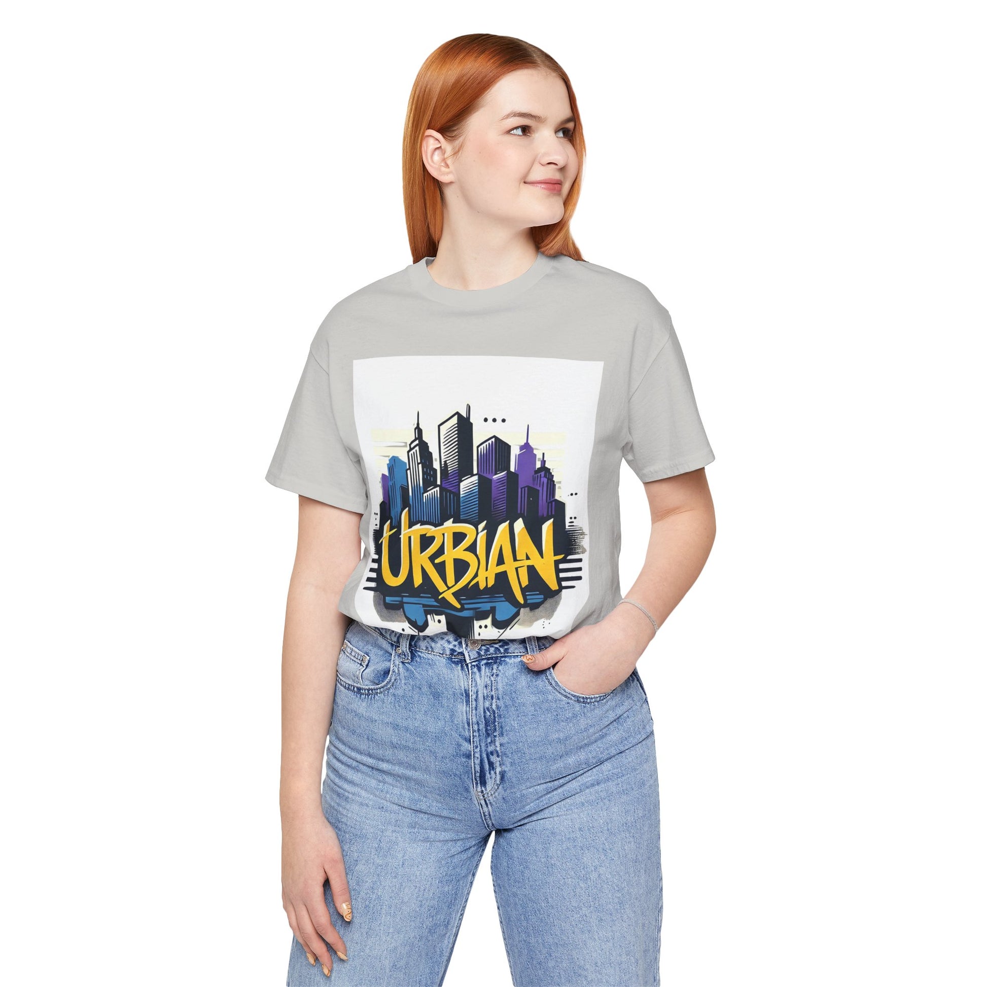 A modern cityscape in deep blues and purples with graffiti-style "Urban" text in bright yellow. Bold and edgy, perfect for urban culture lovers.
