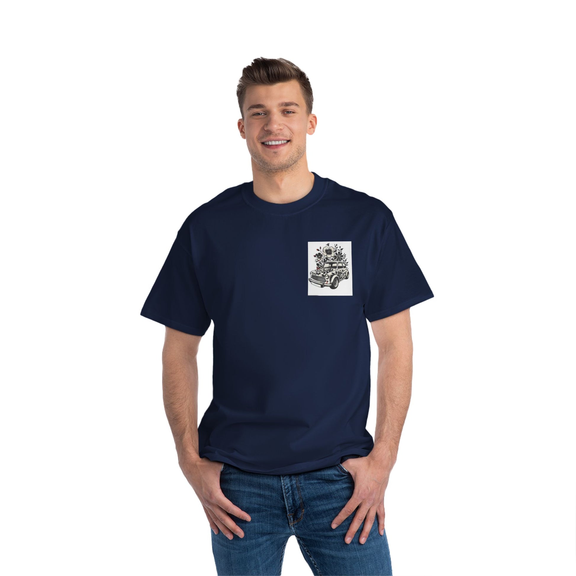 This wearable art piece is crafted from the softest cotton blends, promising not just a striking look but a comfy fit. The double-needle stitching and stabilized shoulder seams ensure your tee stands the test of time, just like the vintage car it showcases. And with the lay-flat collar retaining its shape wash after wash, you're guaranteed a smooth finish every time.