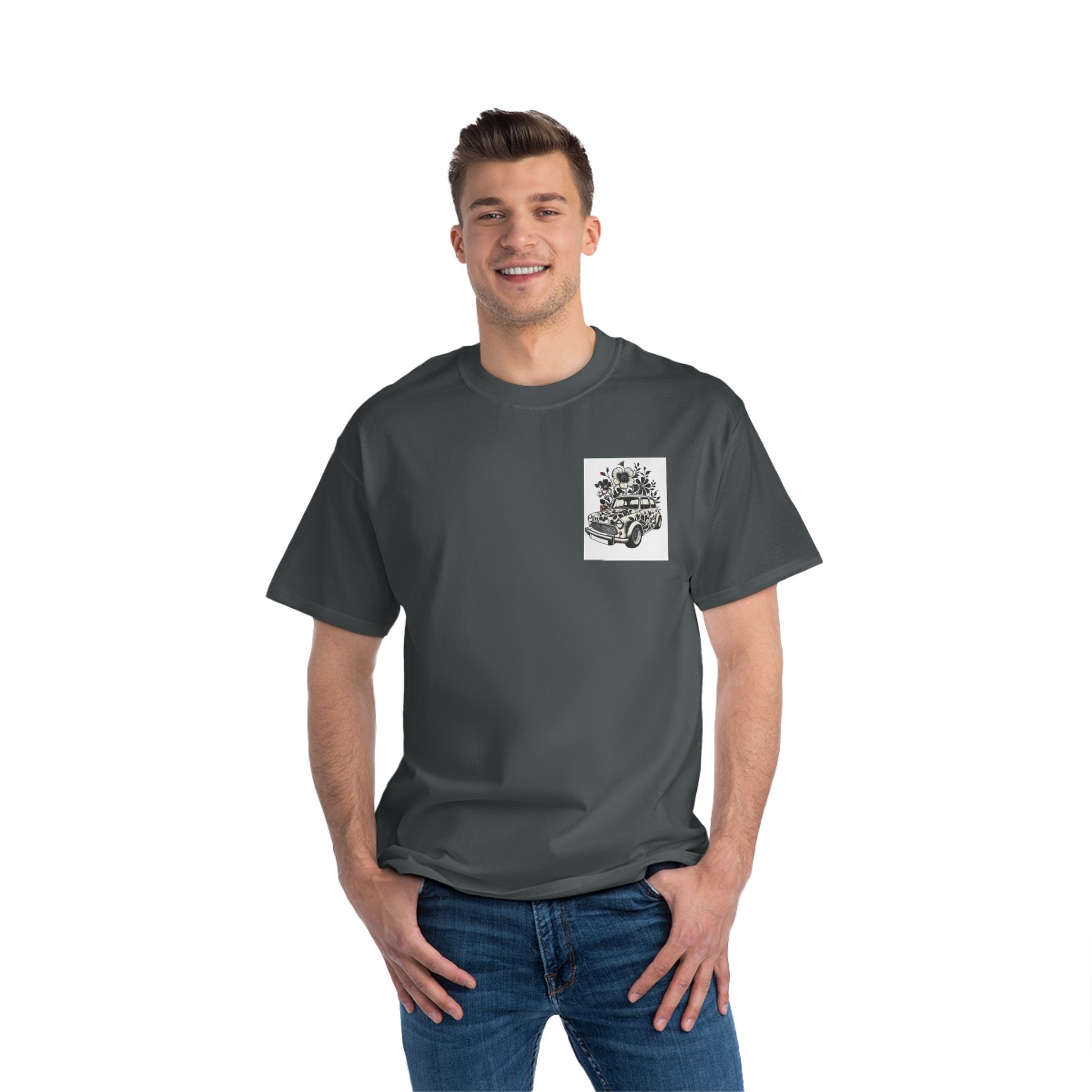 Get ready to roll back in time with our Vintage Car with Floral Pattern: Vintage Floral tee! This unique design, inspired by the charm of yesteryears, is the perfect blend of modern creativity and nostalgic allure. The hand-drawn aesthetic features a vintage car adorned with bold, monochrome floral patterns, punctuated by splashes of red that add just the right amount of pop.