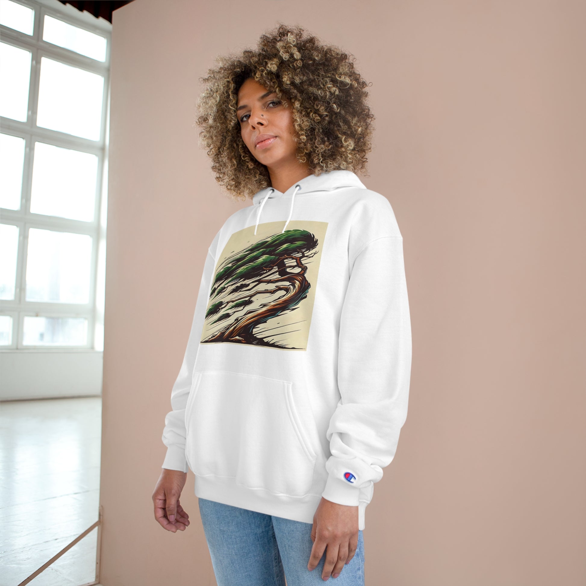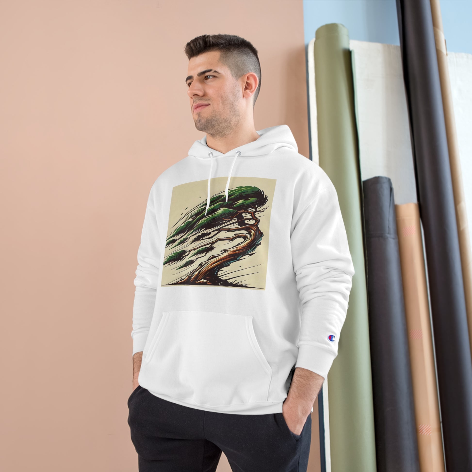 Get ready to "Wear Your World" with our Wind-Swept Pine: Dynamic Motion hoodie! This piece is not just a hoodie, it's wearable art. Our AI technology has rendered a magnificent pine tree with branches blown by the wind, bursting with energy and movement. The captivating design, in calming shades of green and brown, is a testament to the power of nature, rendered in a unique style that's all yours to showcase.
