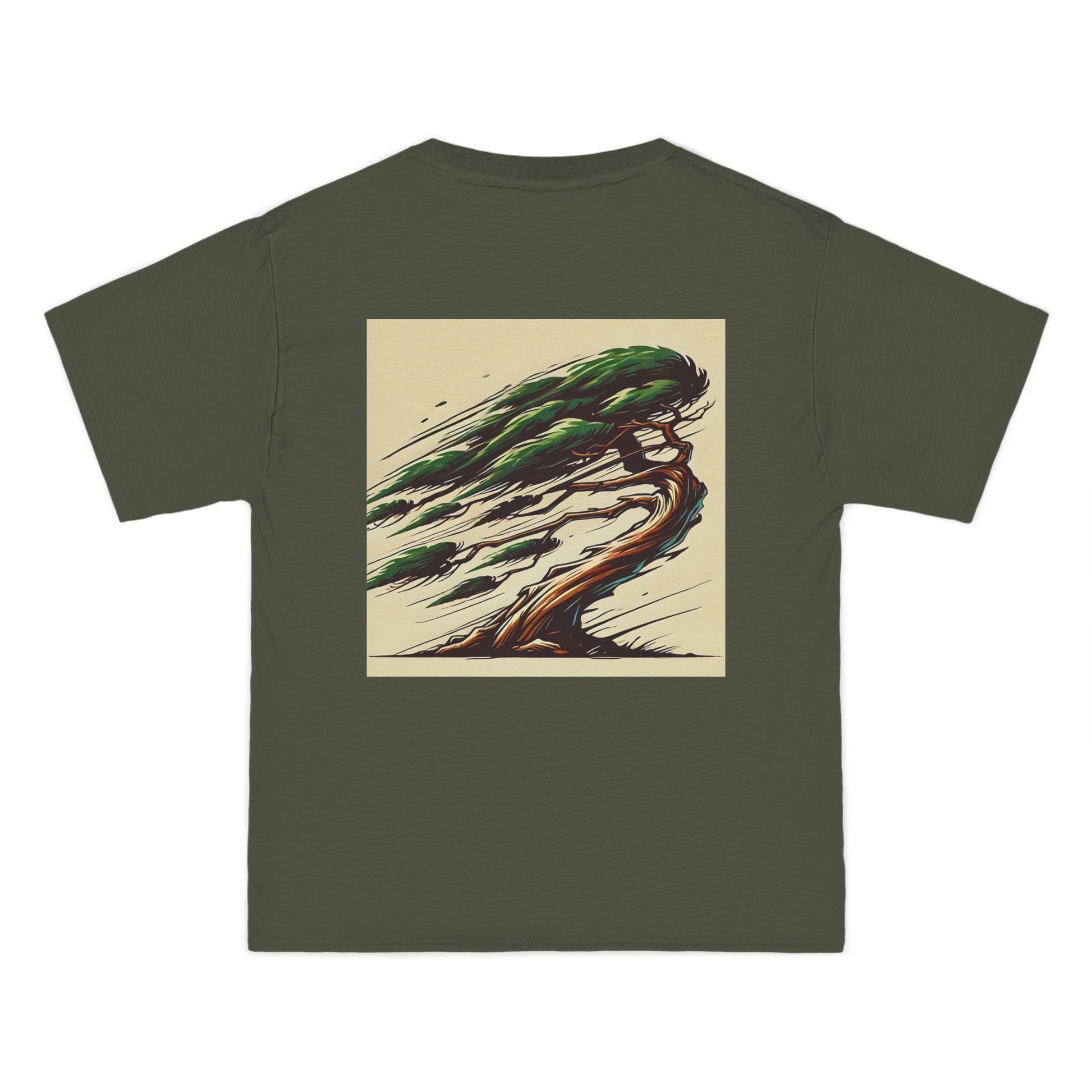 Unleash your creativity with our Wind-Swept Pine: Dynamic Motion tee from Whatever Clothing. This remarkable piece of wearable art paints a vivid picture of a majestic pine tree dancing to the rhythm of the wind. Rendered in earthy greens and browns, the design evokes an energy that's as dynamic and unique as you are. Wear your world, express yourself, and let your individuality shine through every thread.