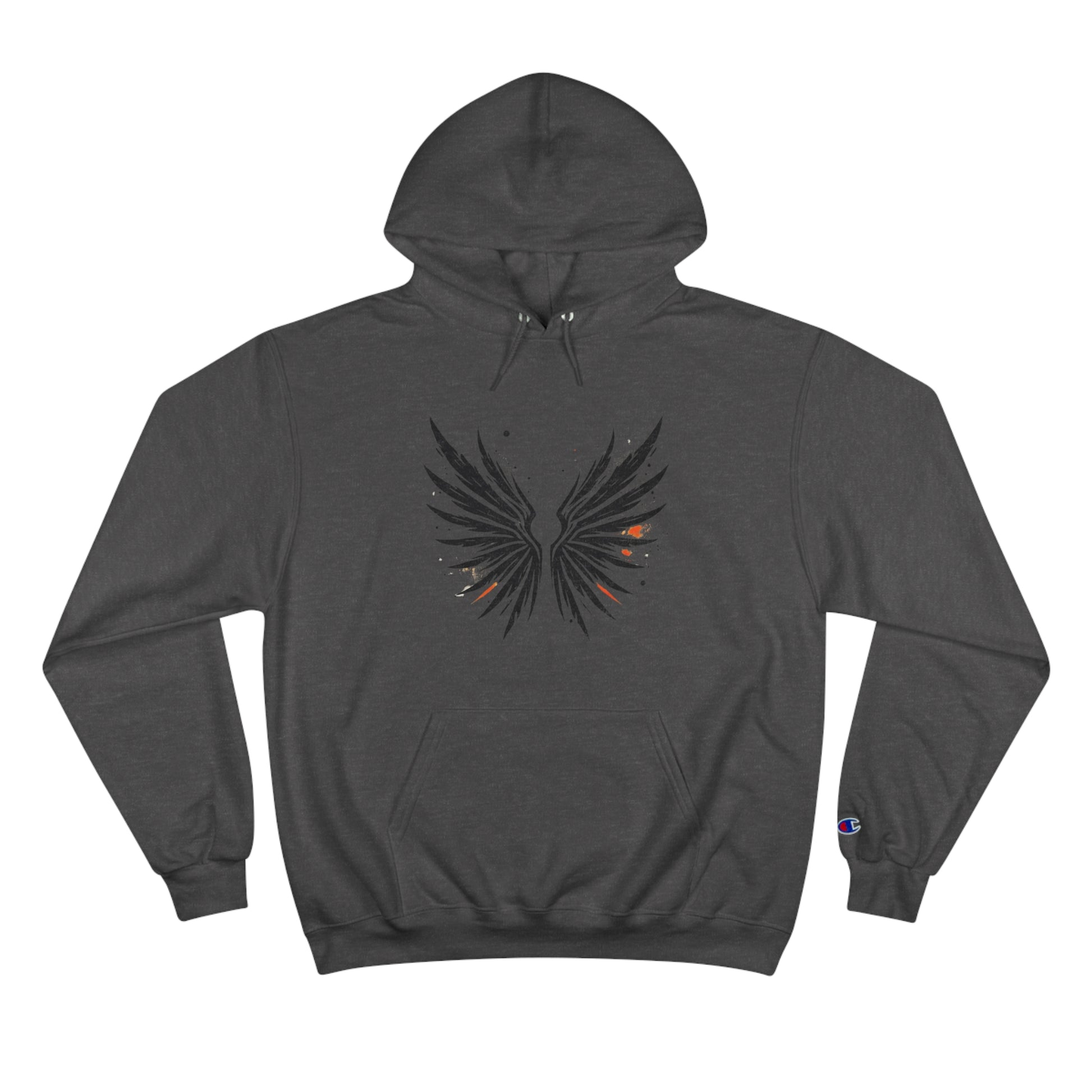 Unleash your creativity with our Wings of Freedom: Pop Art Minimalistic hoodie. This unique, AI-generated design is a bold celebration of flight and freedom, featuring an edgy pair of black wings set against a vibrant orange splatter. It's wearable art that encourages you to express yourself in the most vivid way possible.
