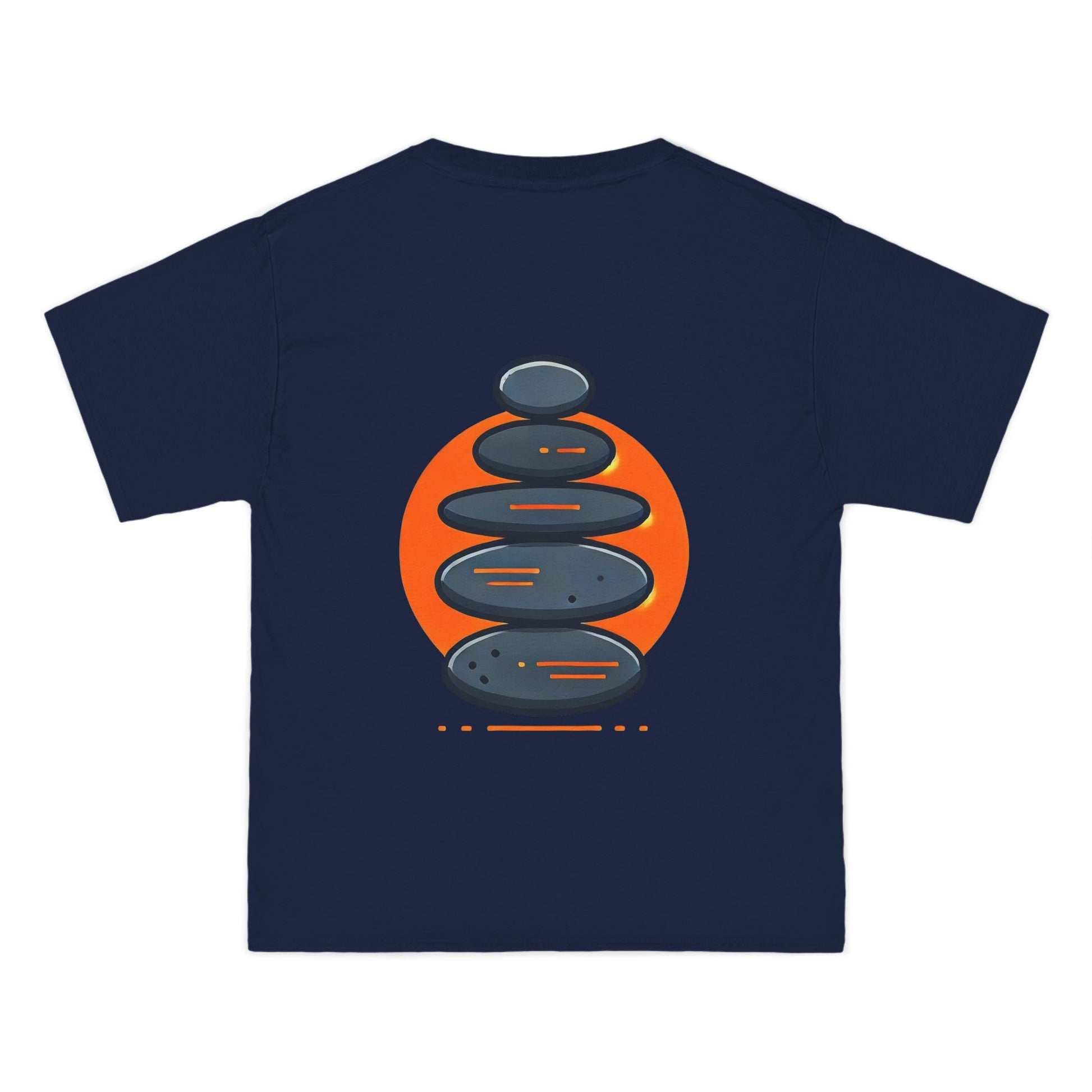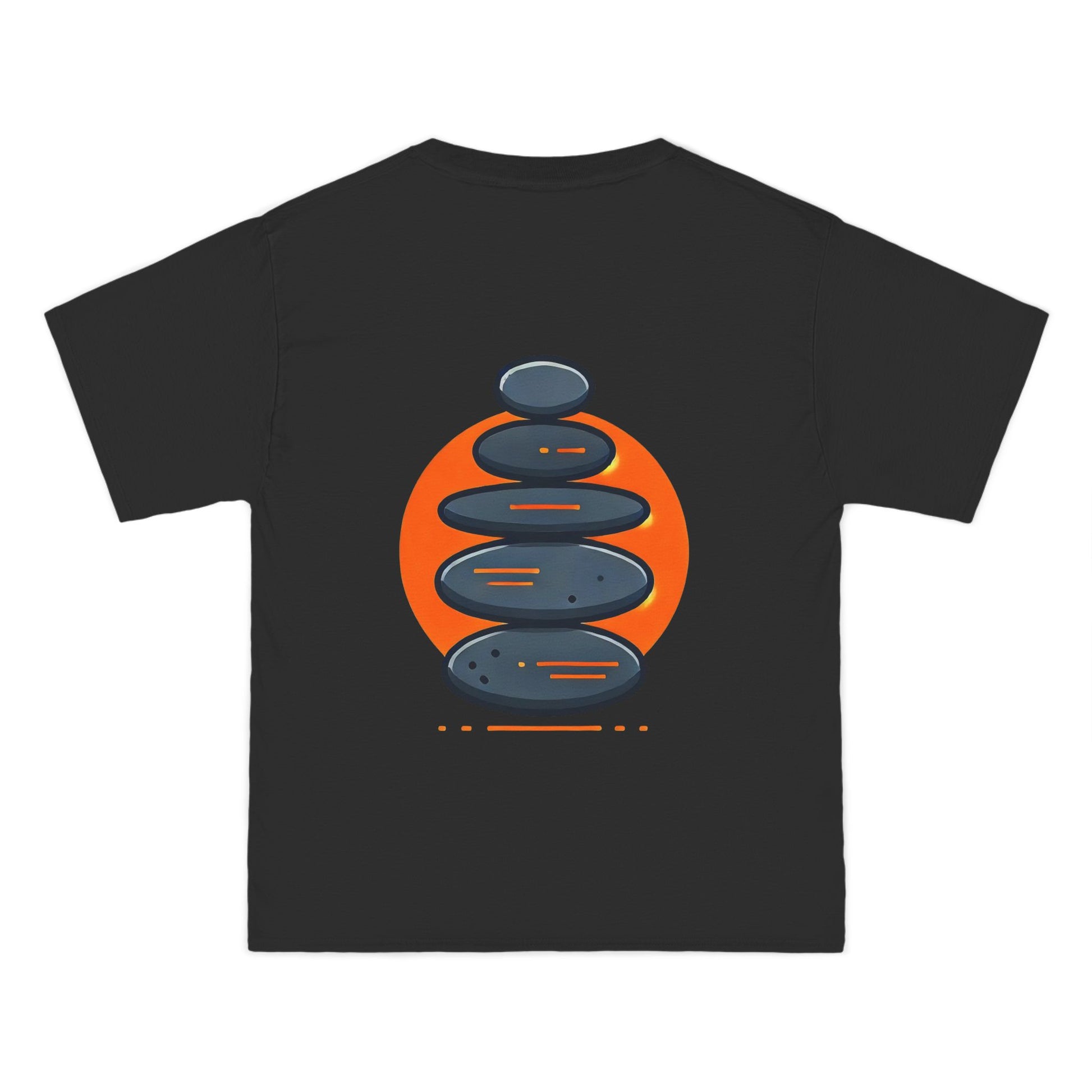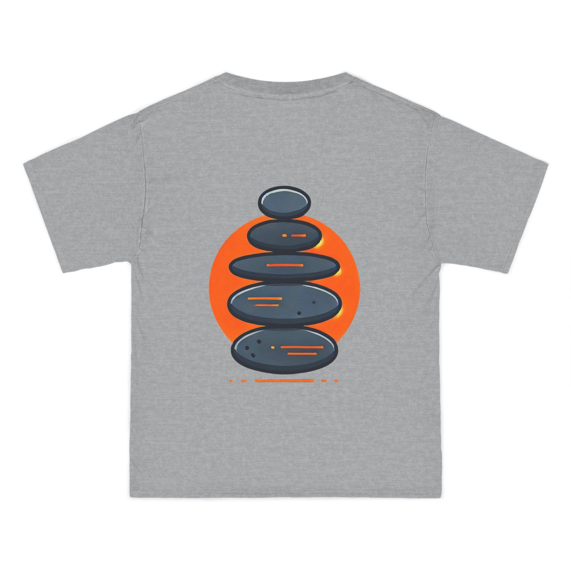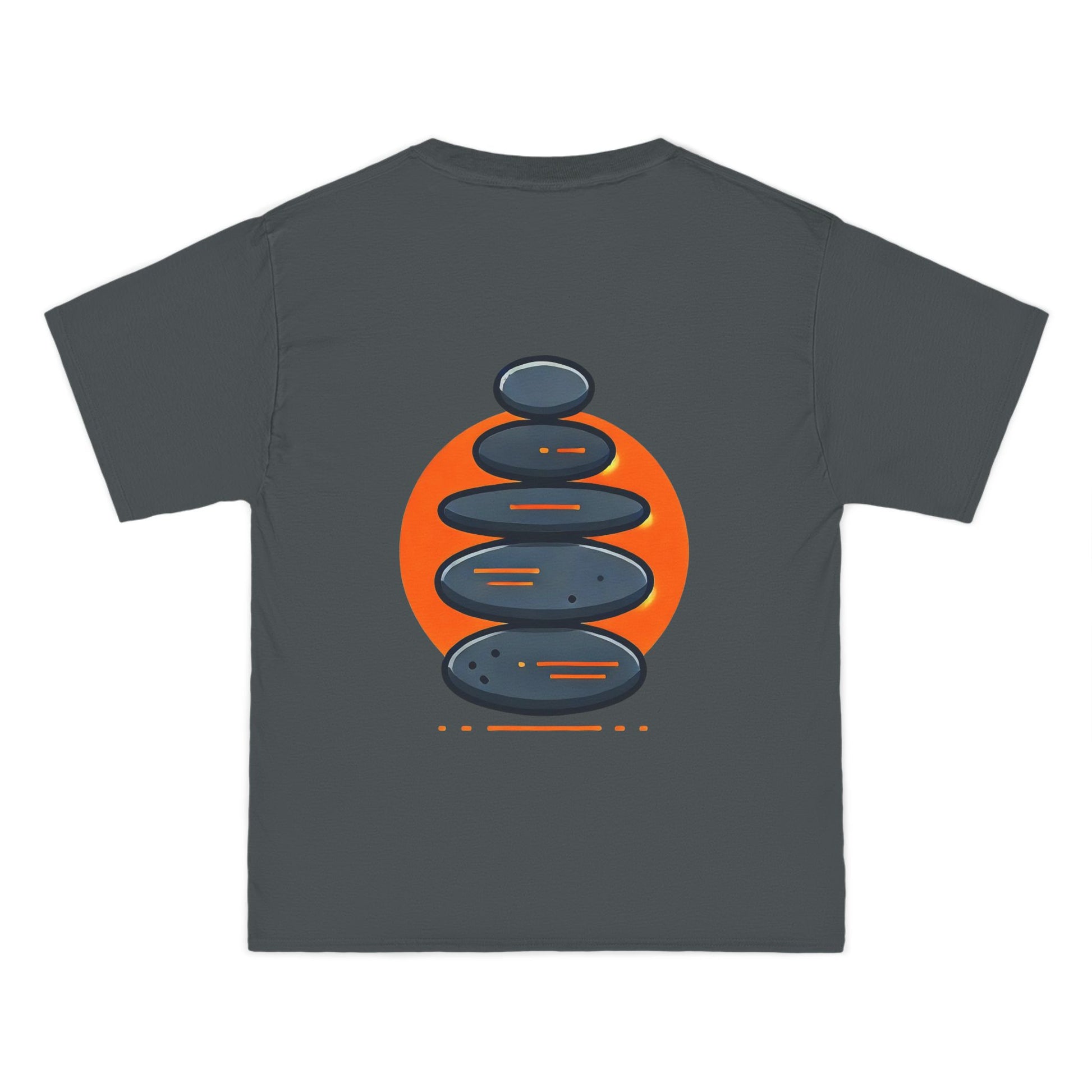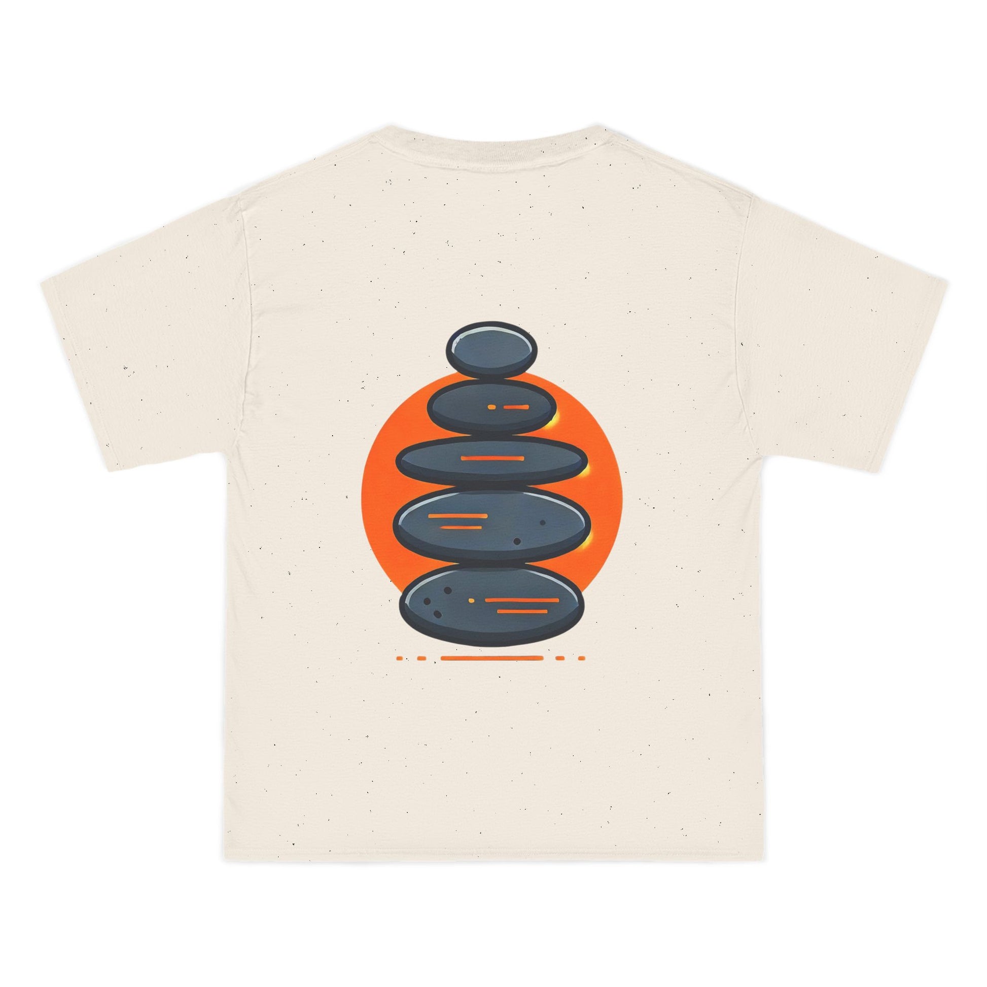 Crafted from 100% cozy cotton or our special blend for heathers, this shirt is a canvas for the soul. It features a soothing design of stacked, smooth stones, accentuated by bold orange hues. Like a peaceful Zen garden on your chest, this design symbolizes balance and tranquility, reminding you and others around you to breathe, balance, and be.
