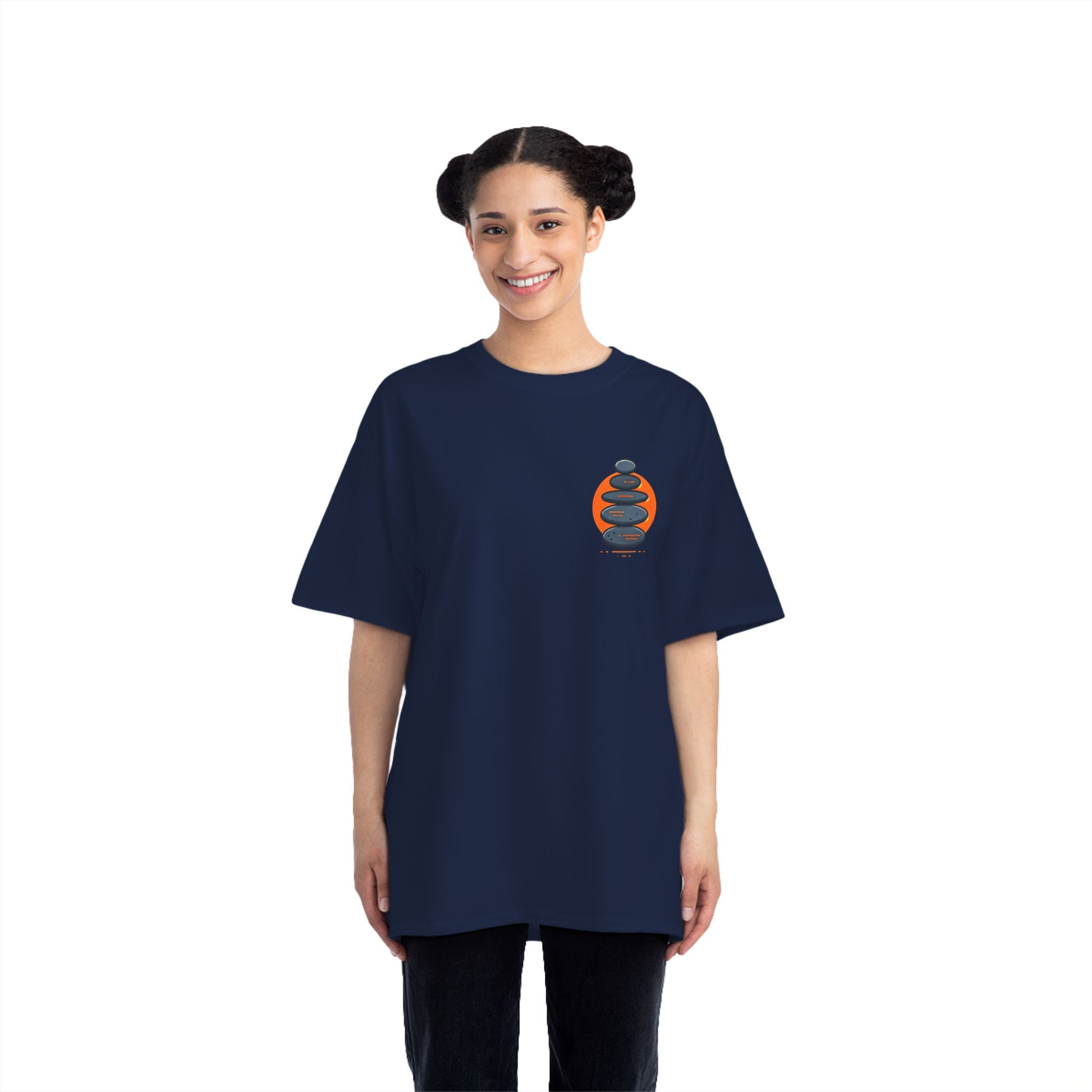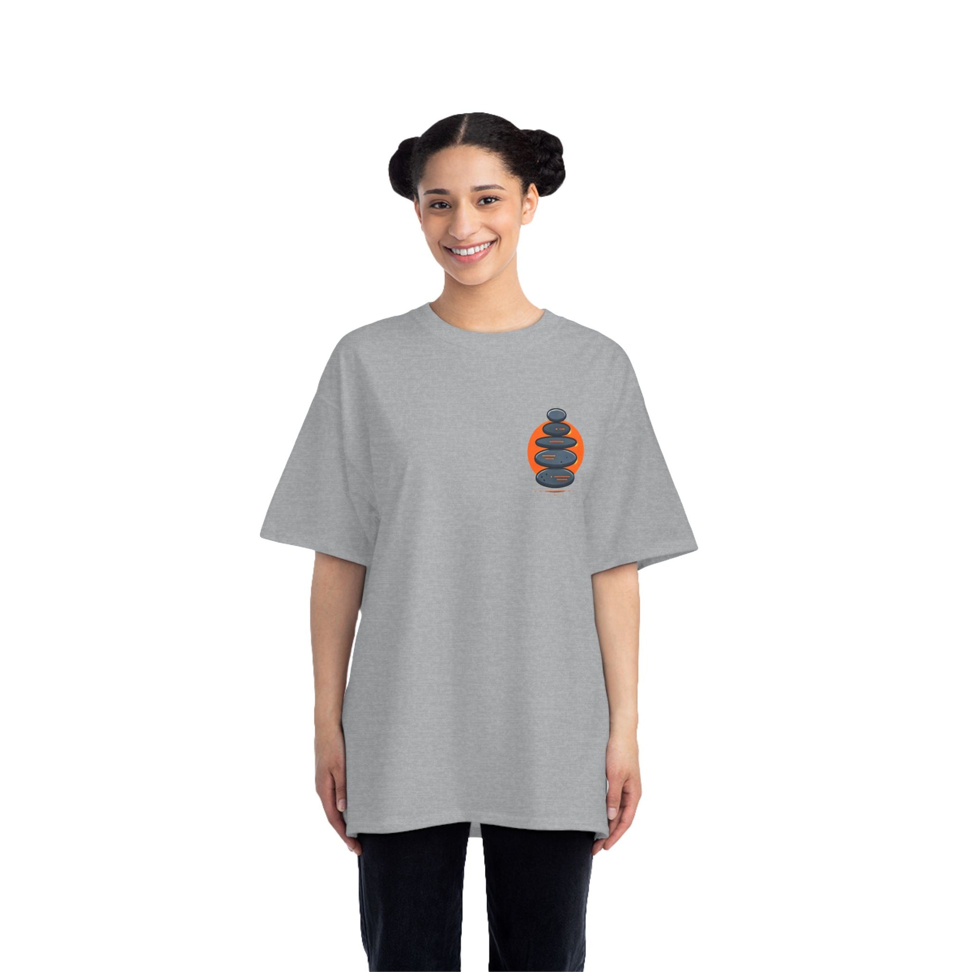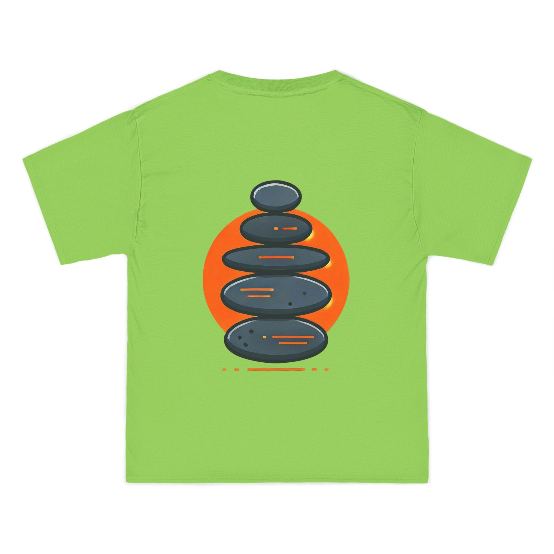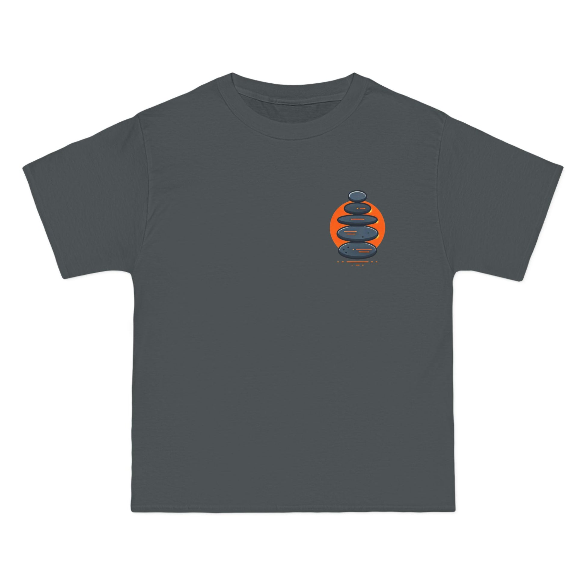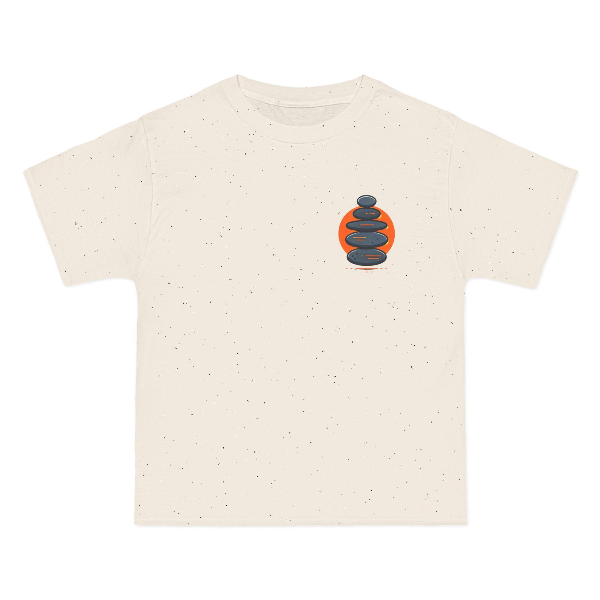 Crafted from 100% cozy cotton or our special blend for heathers, this shirt is a canvas for the soul. It features a soothing design of stacked, smooth stones, accentuated by bold orange hues. Like a peaceful Zen garden on your chest, this design symbolizes balance and tranquility, reminding you and others around you to breathe, balance, and be.